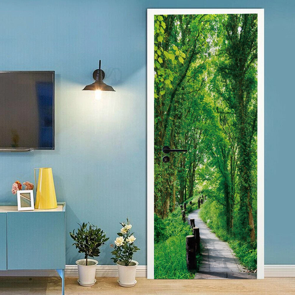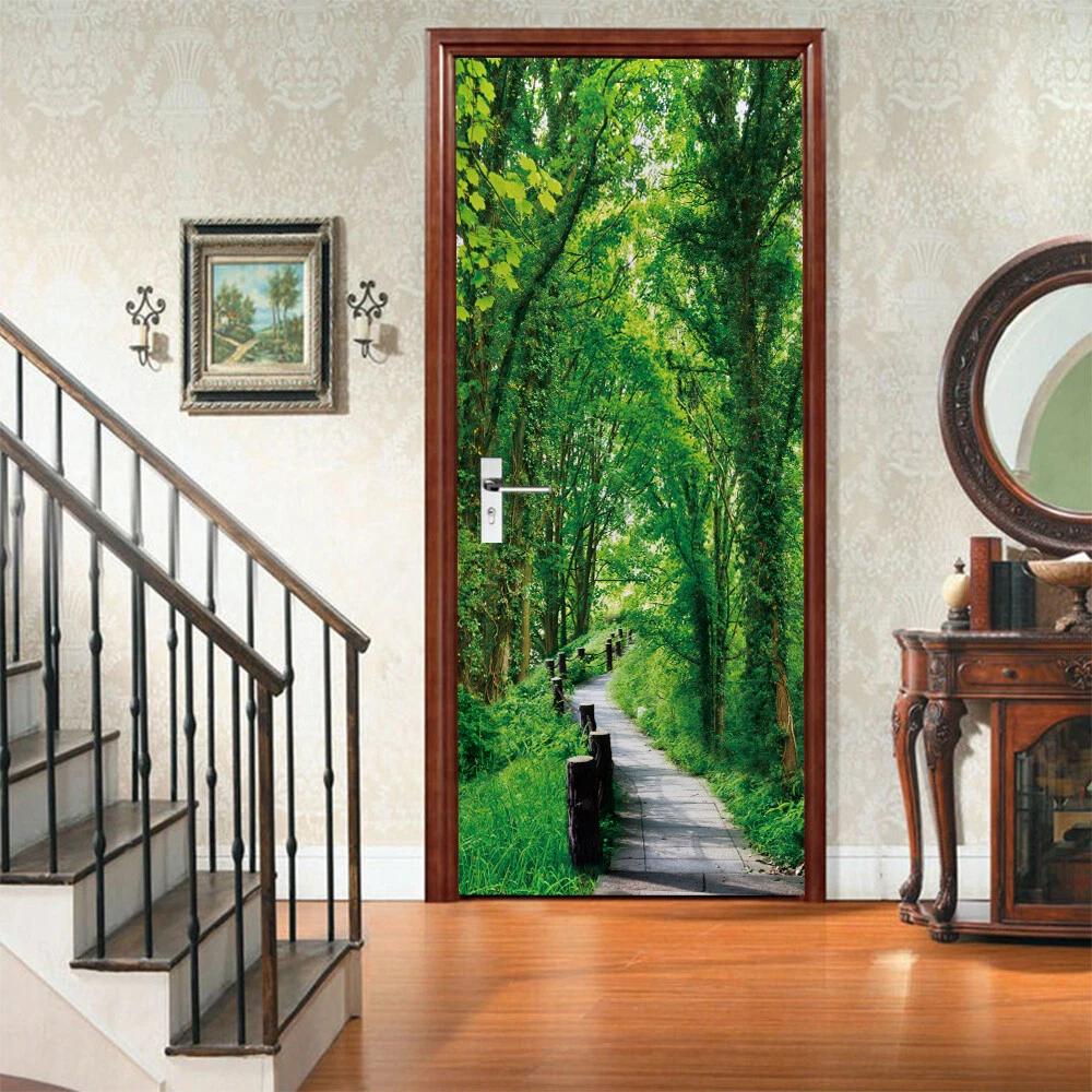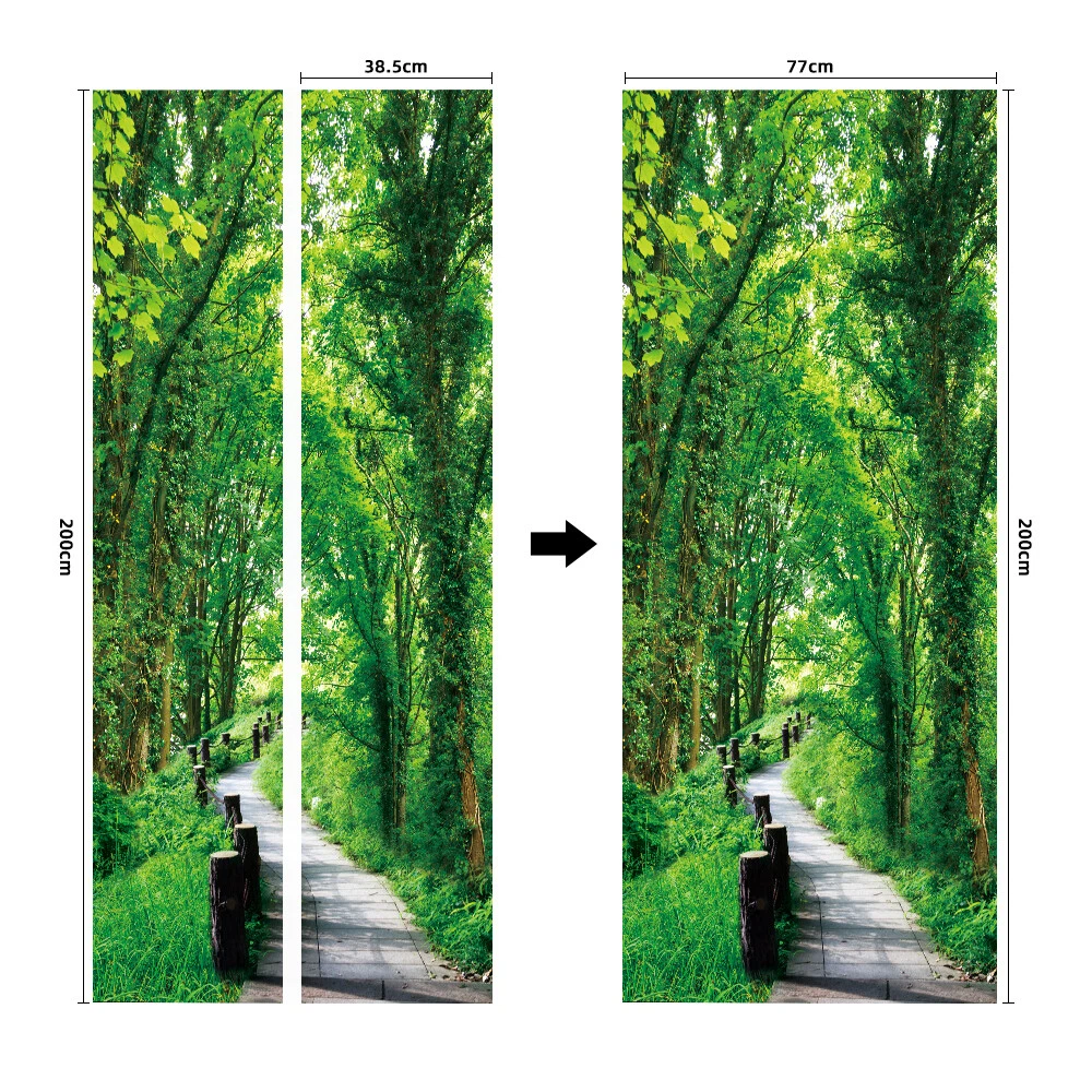 3D Self Adhesive Green Forest Abstract Door Sticker Wall Decor Mural Wallpaper Feature: Made by eco-friendly PVC material, brand new item and high quality. It can add a distinctive visual effect to your home. Waterproof, durable and practical door wall sticker. Easily applied by peeling the protective film backing off, sticker murals are easy to stick. They easily peel off without leaving a mark on your door and can easily used again and again. Specification: Material: Eco-friendly PVC Color: As pictures shown Finish Size On Wall: 30.31x78.74'' Layout Size: 15.15x78.74'' x 2pieces Product Weight: 500g Package Included: 2Pcs Door Wall Sticker Attention: The product you received contains 2 parts. This item is a DIY product. It should be put together by yourself. The product is only suitable for smooth media, such as glass, metal, dust-free walls and so on. Notes: Applies on walls and doors. Please allow 1-5mm difference due to manual measurement. Thanks for your understanding.