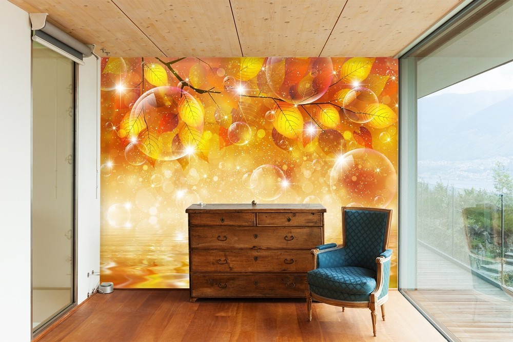 3D Shiny Yellow Leaves ZHUA445 Wallpaper Wall Murals Removable Self-adhesive Ann