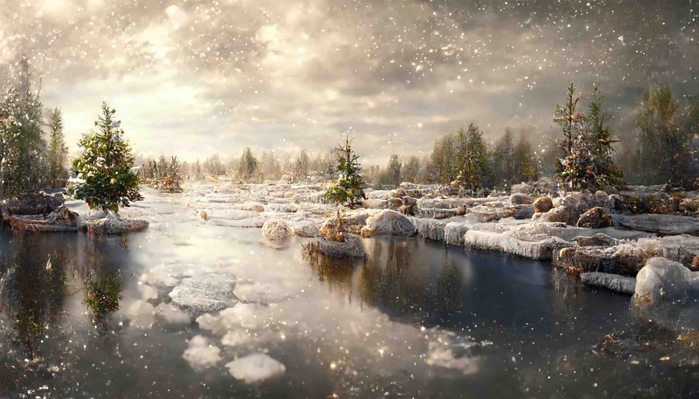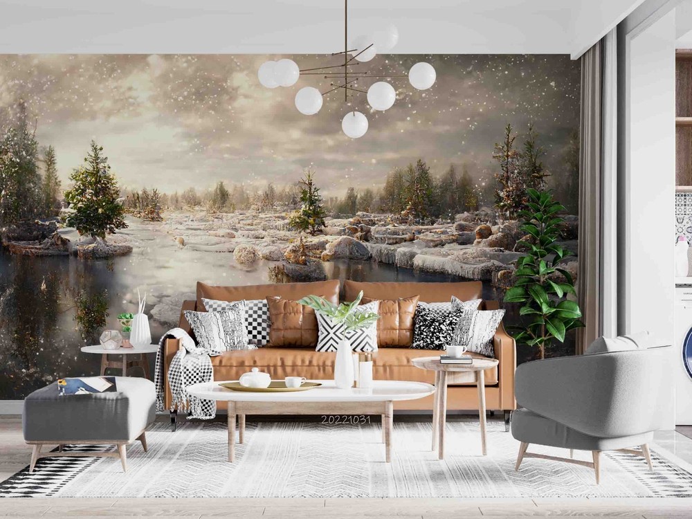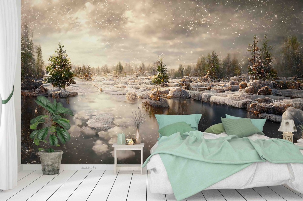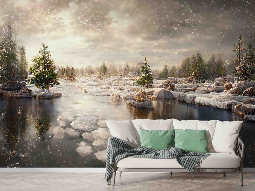 3D Sky Forest River Winter Landscape Wall Murals Wallpaper Murals Wall Sticker 2