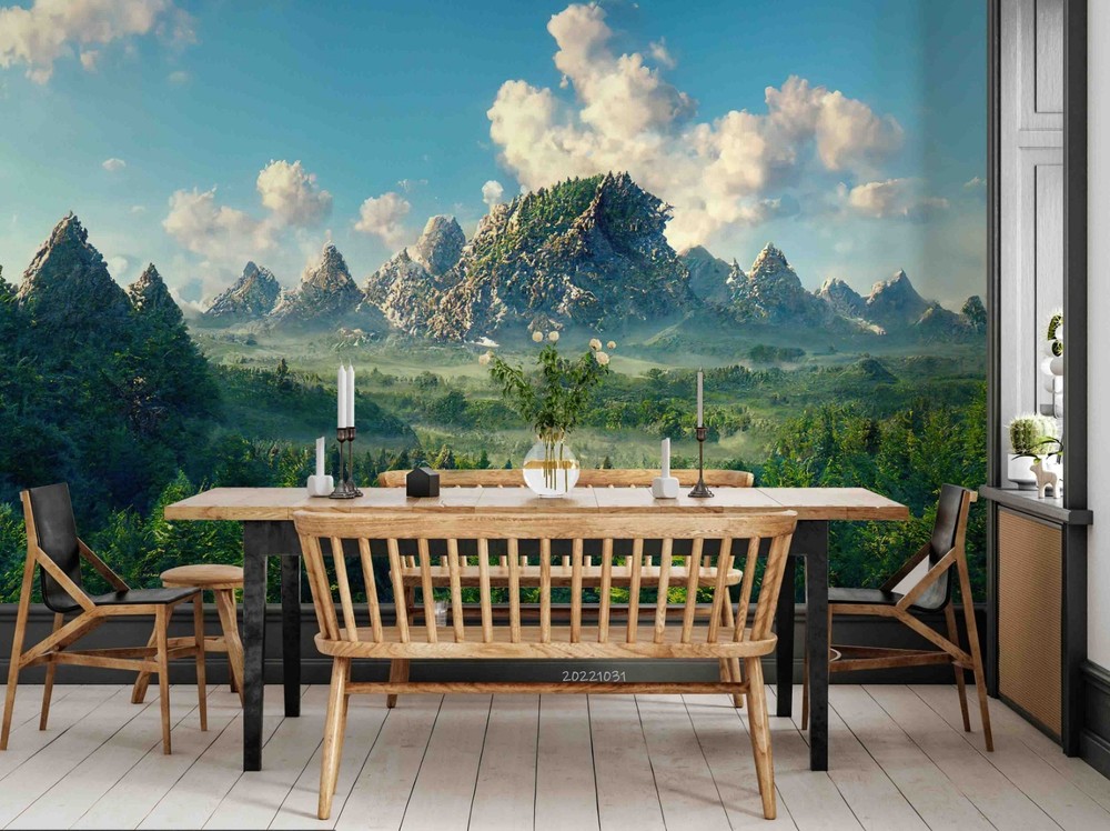 $ 14.233D Sky Forest River Winter Landscape Wall Murals Wallpaper Murals Wall Sticker 2