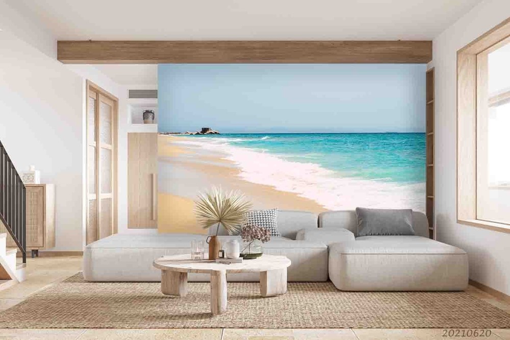 $ 14.23D Ocean Beach Sky Landscape Wall Murals Wallpaper Murals Wall Sticker