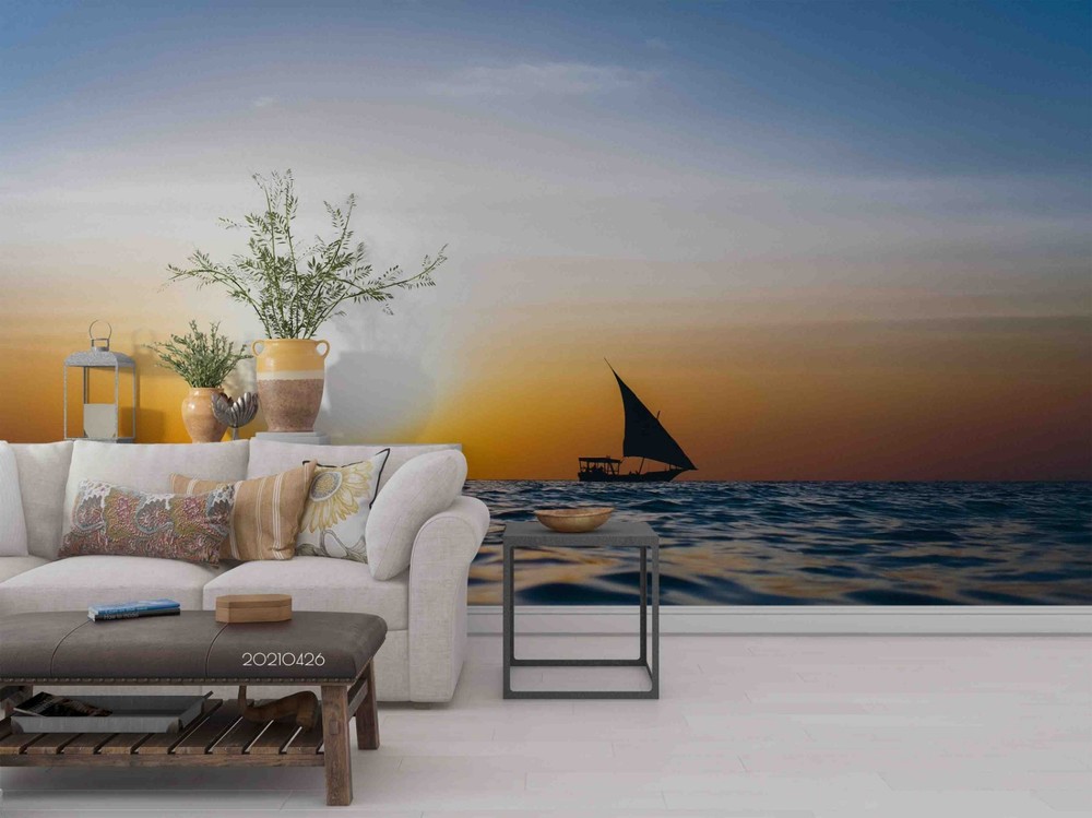 $ 14.813D Sea Sky Sunset Landscape Wall Murals Wallpaper Murals Wall Sticker