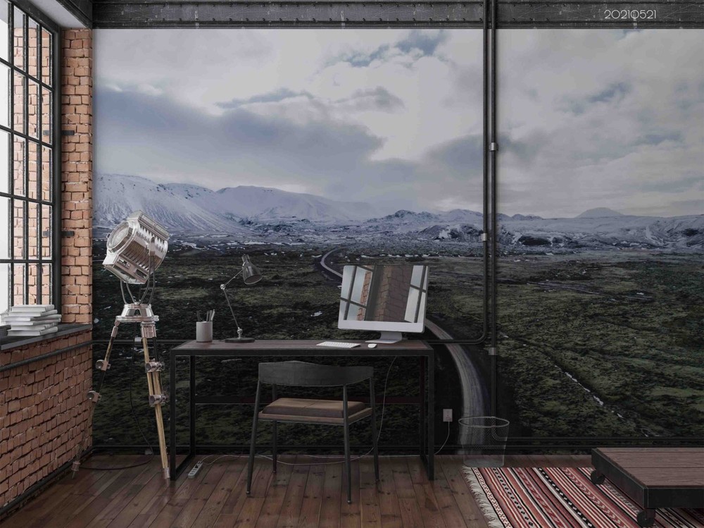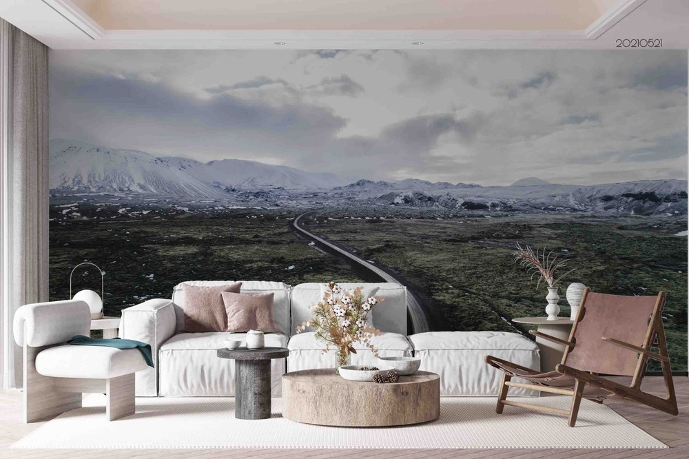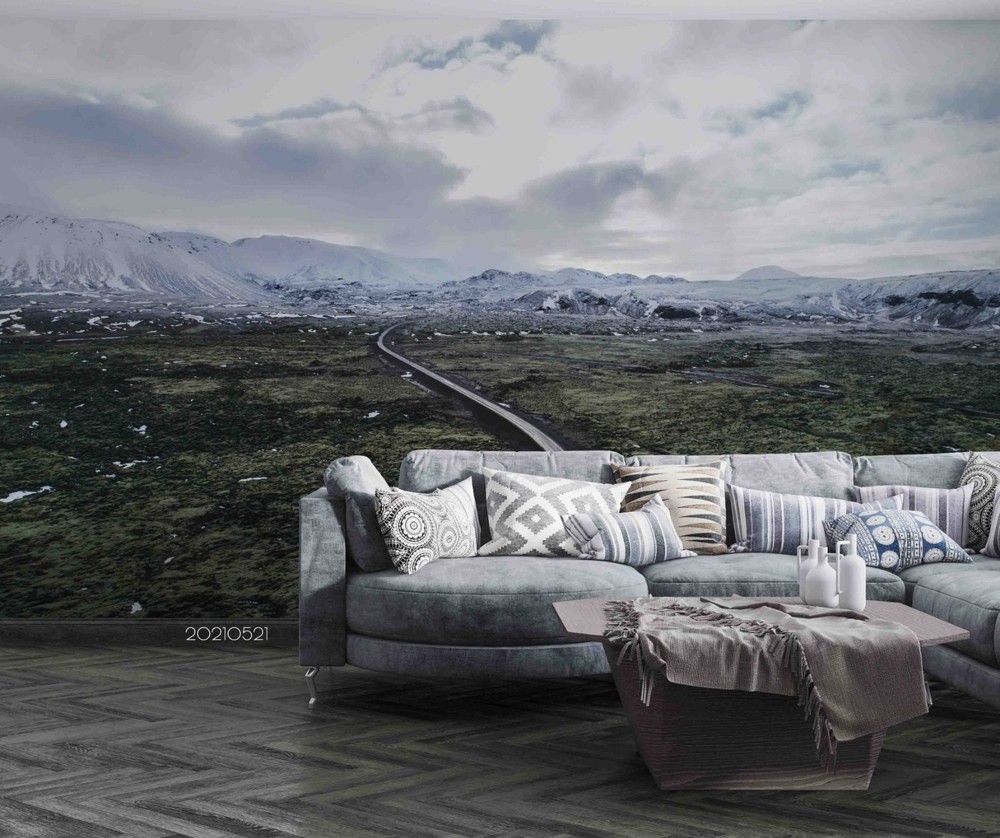 3D Mountains Clouds Highway Landscape Wall Murals Wallpaper Murals Wall Sticker