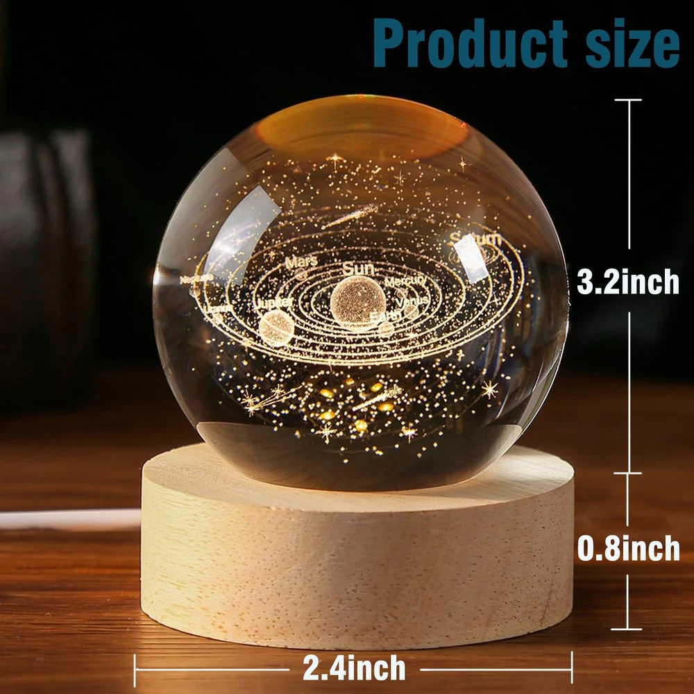 Store New Arrivals Add to Favorite View Feedback Contact 3D Solar System Crystal Ball Lamp,3.2In Crystal Ball Night Light Engraved Astronomy Decor,Galaxy Planets Glass Ball Lamps with Woodern Base,16 Colors Remote Control Gift for Kids,Friends,Loves Description Item model number SJD-01 Light Source Type LED Style Art Deco Number of Items 1 Power Source Battery Powered Number of Light Sources 1 Country of Origin China Batteries Included? Yes Lighting Method LED Lamp Type LED Cartoon Character 3D Solar System Number of Pieces 1 Room Type bedroom,living room,children's room,study,hallway,officeor,any style of space Bulb Shape Size B10 Product Dimensions 3.2"D x 3.2"W x 3.2"H Material Glass Batteries 2 CR2 batteries required. (included) Installation Type Tabletop Controller Type Remote Control Specific Uses For Product Indoor use only Indoor/Outdoor Usage Indoor Control Method Remote Water Resistance Level Waterproof Batteries Required? Yes Item Weight 0.65 Kilograms Connectivity Technology USB Special Features 16 colors and Flash, strobe, fade and smooth four modes Multiple Lighting Modes,Wooden Base with USB Cable Line Special Feature 16 colors and Flash, strobe, fade and smooth four modes Multiple Lighting Modes,Wooden Base with USB Cable Line Shade Height 3.2 Inches Part Number SJD-01 Shade Color Multicolor Mounting Type Tabletop Color Solar System Wattage 2 watts Is Cordless? No Base Material Wood Is Waterproof true Shape sphere Voltage 5 Volts (DC) Recommended Uses For Product Decoration Shade Material Glass, Wood Included Components Remote Control, Battery Base Diameter 3.2 Inches Switch Type Remote 🔮【3D Solar System Crystal Ball Night Lights】3.2 Inch Large Crystal Ball Made Of Premium Glass Crystal,Interior Images Are Carved By Model Engraved with the Advanced 3D Laser Engraving Technology are Clear,Distinct and Stereoscopic,the Crystal Ball will not Fade Forever.It a great gift for Anyone Interested In Space And Astronomy.Solar System Crystal Ball is a perfect gift to give your wife,girlfriends,friends,family,Kids,Teens,Astronomy Enthusiasts, Physics Enthusiasts,Space Model Collectors. 🔮【Unique Perfect Gift】The inside of the crystal clear ball is engraved with exquisite and clear 3D pattern,under the illumination of soft light,it creates a warm and dreamy atmosphere, bringing a romantic artistic sense to your home.Suitable for bedroom,living room,children's room,study,hallway,any style of space.The gift for Valentines Day,Mothers Day,Wedding,Anniversary,Thanksgiving Day,Christmas,Graduation, Halloween Day.It is both A Bedside Night Lamps and a very beautiful Decoration Lamp. 🔮【Multiple Lighting Modes】: These 3D Crystal Ball Lamp have 16 colors and 4 modes. You can use the remote control to choose the color of your favorite lights and adjust the intensity of the lights. Flash, strobe, fade and smooth four modes,can also always light a color, soft and not glare, protect your eyes. You can easily control this night light even when you are lying in bed.Please be close to the remote control when using it. The adjustment range of the remote control is 2M (80inch). 🔮【Dreams From The Universe】Like love, the universe gives people a feeling of vastness and mystery, while also representing charm and longing.We like to use it to symbolize good wishes, such as eternity, harmony, peace, and lofty ideals and aspirations.So the 3D Solar System Space Gifts Crystal Ball Night Light we designed are also seen as gifts that symbolize love,health and Strong and long-lasting career, representing blessings and wishs. 🎁【USB Work】:The diameter of the 3D Night Light Crystal Lamp is 3.2 in.The weight is about 1.65lb.The crystal ball can be stably placed on the wooden base.Comes with Wooden Base with USB Cable Line(no Adapter),Connect to such as Computers,Portable Charger,Output Charger/Adapter,etc.Long life and Power saving: About 2W/H,can be used for many years.We strive to offer our customer the best product and after sale service.Any problem please feel free to .We will make customers satisfied! Product Description 3D Solar System Crystal Sphere Night Lights Dimmable Crystal Space Night Light Adjustable Color Light With Wooden Base. 16 Color Adjustable Color Night Light Solar System Gift Soft LED Lighting Adjust Brightness Please be close to the remote control when using it. The adjustment range of the remote control is 2M (7 FT). Create A Safe And Pleasant Atmosphere Soft Diffused light brightness design make it a perfect night decor for bedroom, study room, bedside table, baby room.night light emits a warm and soothing light,Will Not Hurt Your Eyes In The Dark. You Can Enjoy These Scenes In a Peaceful Mind. Makes it easier to fall asleep. USB Lighting adjustment Wooden Base The base is safe and firm, and can be used with computers, charging treasures and chargers, and is suitable for various USB power outlets. USB safe voltage allows you to better decorate every location in the room! Remote Control Adjustment The remote controller can adjust any lighting color you like. There must be one color you like when you choose 16 colors. The remote controller can easily control the change of lighting brightness in bed, which is more convenient. Suitable for decoration in various positions of the room. Best Gift To Show Your Love And Care.Best Gift To Show Your Love And Care. ABOUT US We offer the best prices around on high quality products. Our E-store includes media such as books, movies, music and games while offering electronics, toys, sporting apparel, clothing, tools, general home, garden items and more. SHIPPING We are always working hard to ensure your package arrives as soon as possible. Please understand that some factors like weather, high postal traffic, and the performance of shipping companies are outside of our control. We offer free shipping to the lower 48 states and ship within 2 business days of payment, usually sooner. We do not accept P.O. Boxes. Please provid