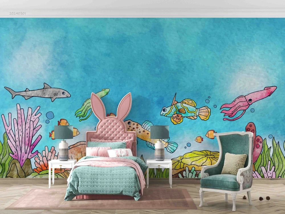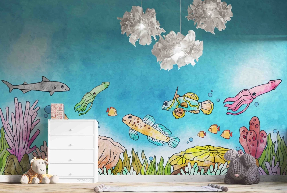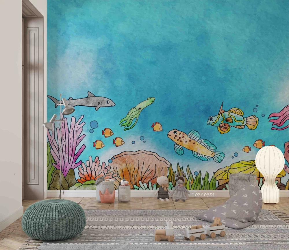 3D Underwater World Coral Fish Blue Wall Murals Wallpaper Murals Wall Sticker