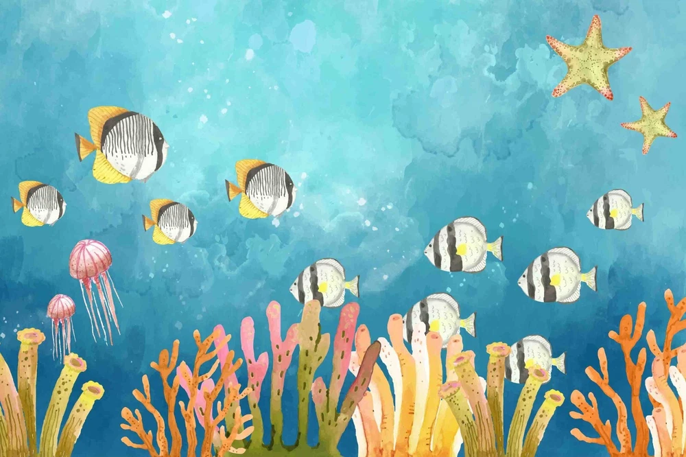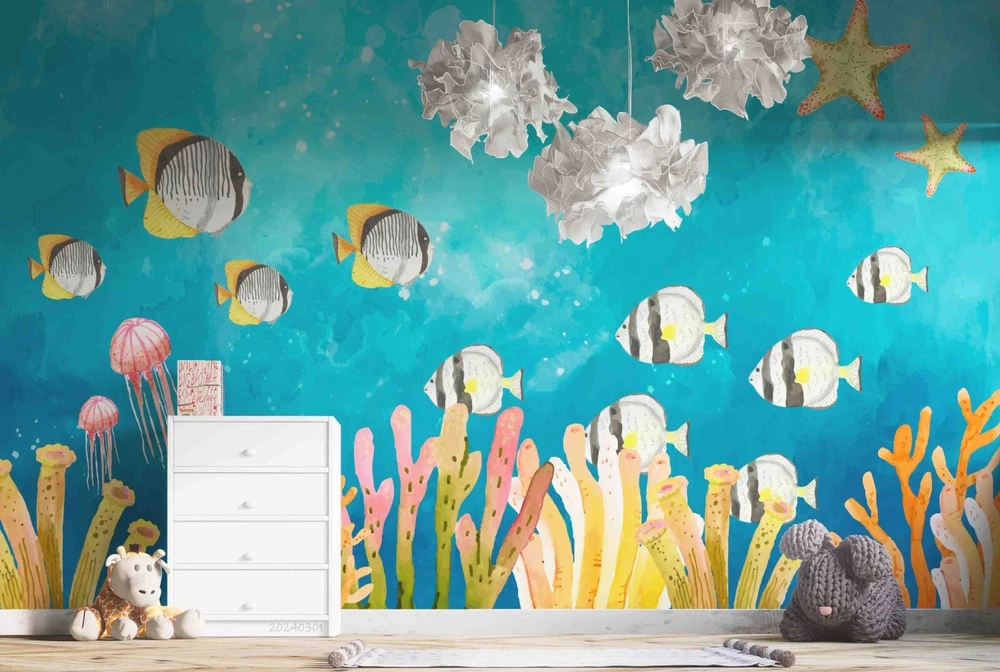 3D Underwater World Coral Fish Blue Wall Murals Wallpaper Murals Wall Sticker