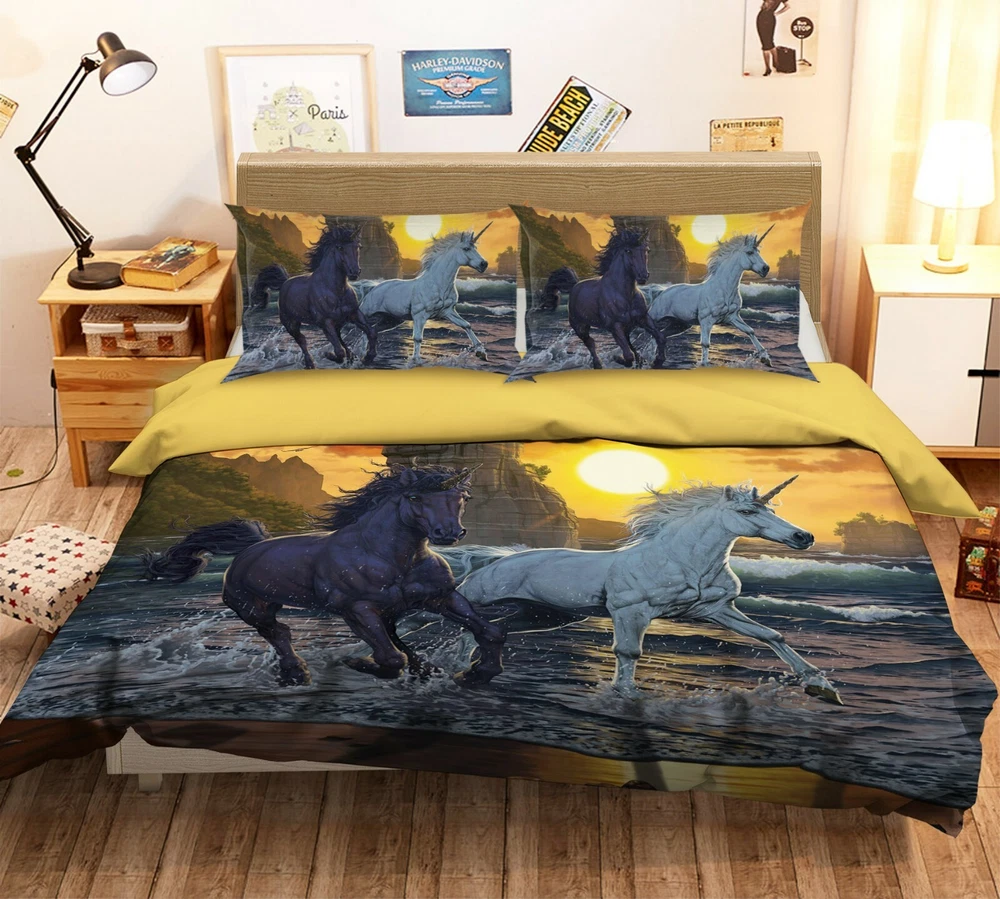 3D Unicorns In Sunset A89 Bed Pillowcases Quilt Duvet Cover Vincent Zoe