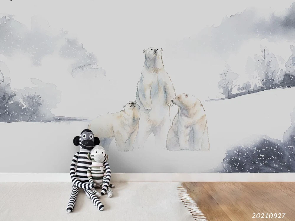 3D Watercolor Forest Polar Bear Wall Murals Wallpaper Murals Wall Sticker 136