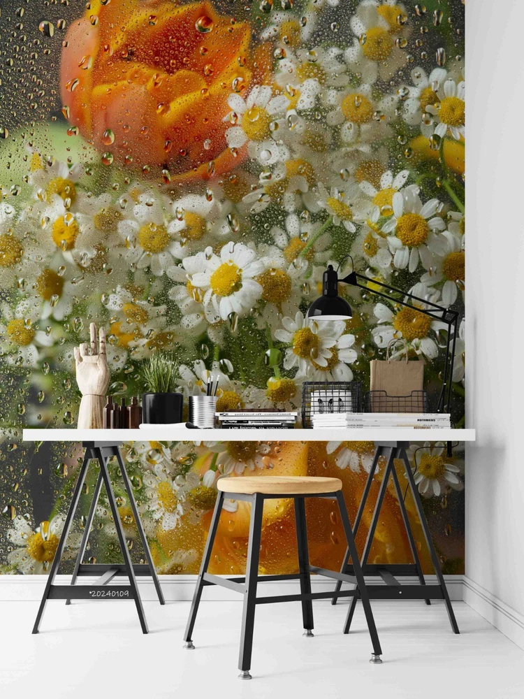 3D White Floral Oil Painting Wall Murals Wallpaper Murals Wall Sticker