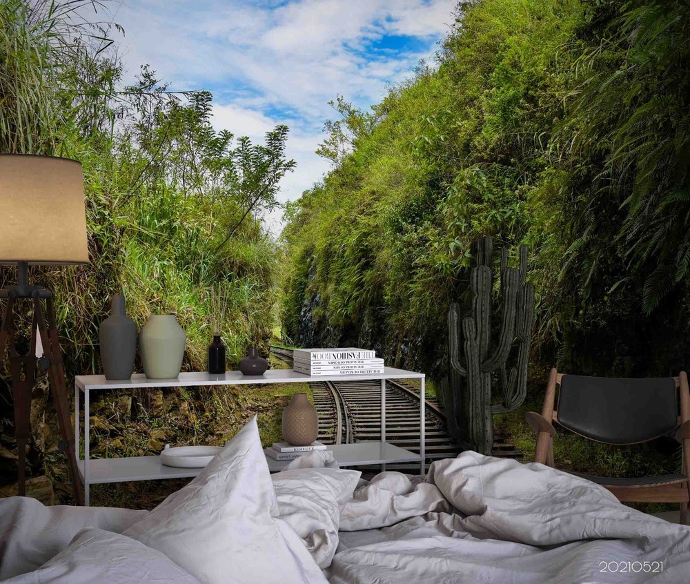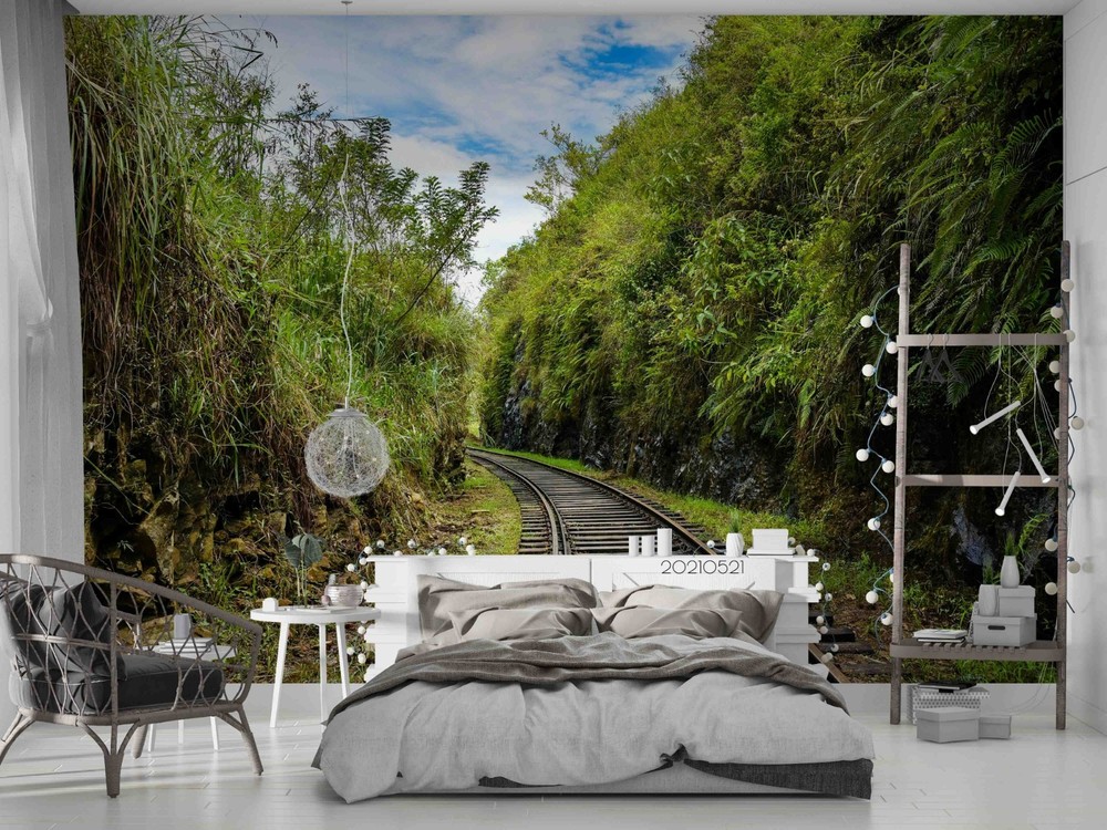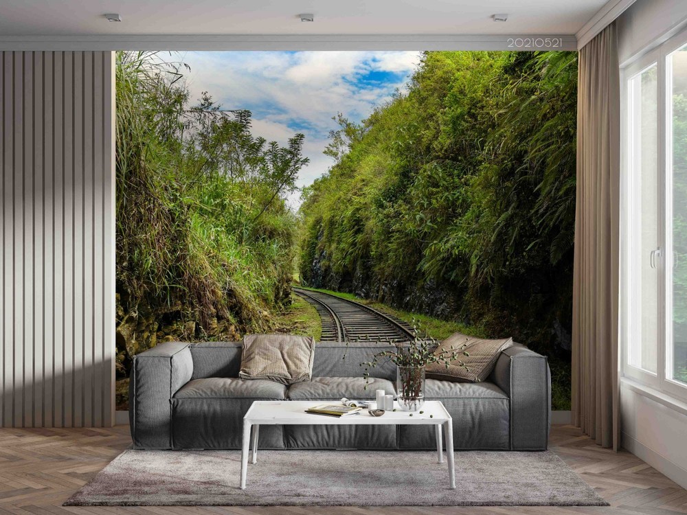 3D Woods Sky Railway Landscape Wall Murals Wallpaper Murals Wall Sticker