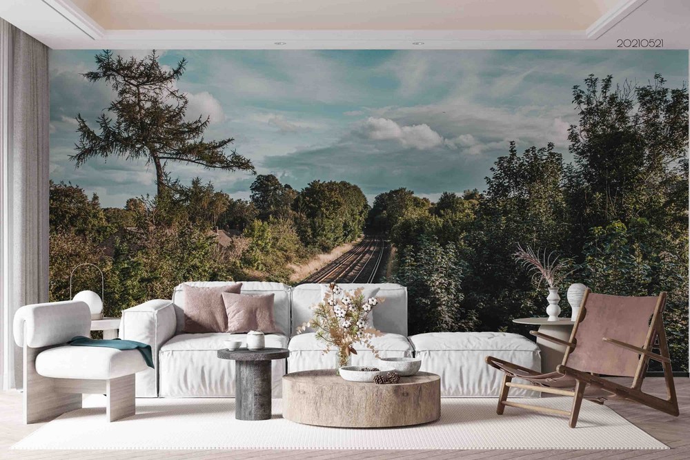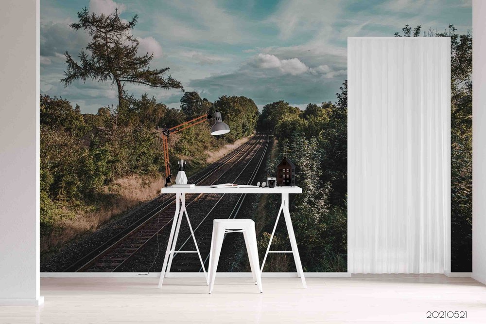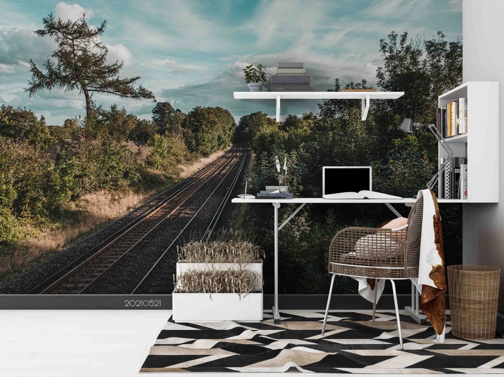 3D Woods Railway Landscape Wall Murals Wallpaper Murals Wall Sticker 3