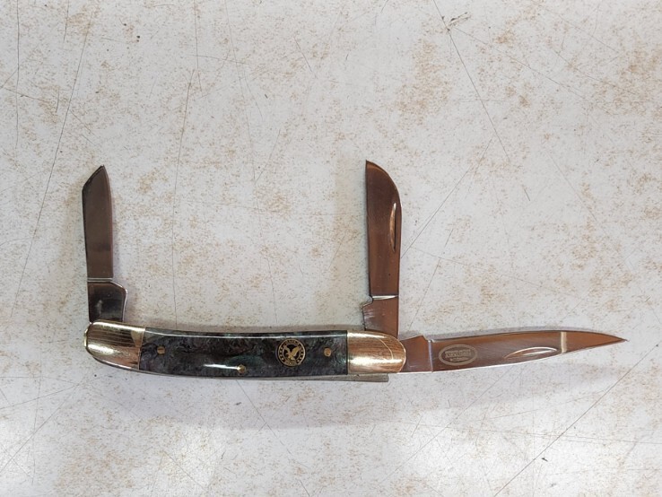 3-Inch 3-Blade Pocket Knife with Eagle Edge Dark Granite Design