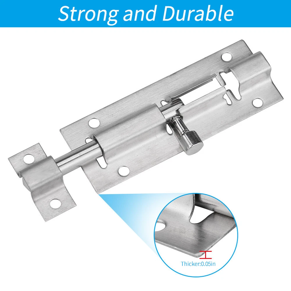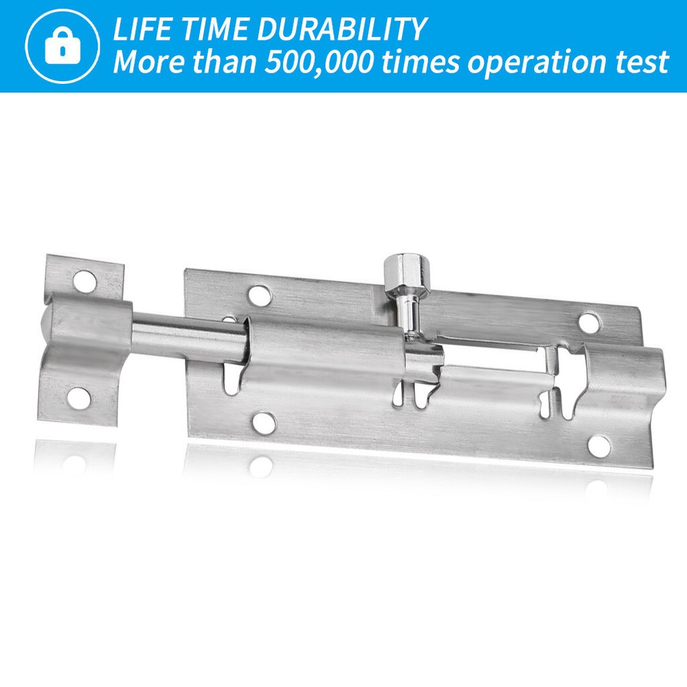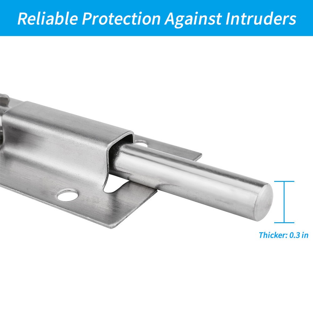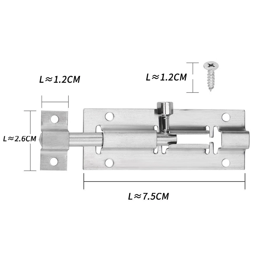 Door Security Slide Lock 3 inch Barrel with Door Sliding Lock with 12 Screws Product description The sliding door lock is upgraded from the old door and is 2 times than the normal barrel bolt to ensure your privacy. Provide extra security for your bathroom, bedroom, cabinet and other interior doors. Although it is small, it can close the door firmly. This high quality door unwanted intruders from entering. Heavy-duty steel sturdy latches have been tested for 500,000 operations. The latest plating and polishing techniques ensure perfect durability. The wire-trimmed surface sliding lock improves resistance, improves wear resistance and hardness, protects metal surfaces and has good insulation properts. The center-designed barrel bolts are ideal for mounting on the left and right sides, the bolts can be pushed to the left or right, or the bolts can be mounted to the left and right. The barrel is ideal for use in vertical, horizontal applications where the notch holds the bolt in the locked position. Upgraded the performance and durability of the door lock. Install the door lock on the door frame with an electric screwdriver and drill bit to complete the installation of the DIY bucket lock for less than 5 minutes. Door sliding locks are suitable for doors, cabinets, cabinets, wooden , windows, fences, kennels, bathrooms, bedrooms, bars. Brushed finished surface sliding lock for improved resistance, increased wear resistance and hardness, protection of metal surfaces and good insulation properts. Products include 2 X locks 12 X screw