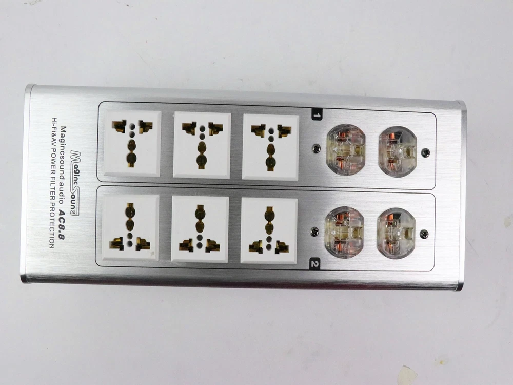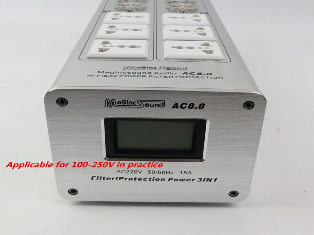 Description Using Embedded square liquid-crystal display to make the whole device’s appearance compact. This design can avoid the accidental damage of the screen in visually displayed number. This equipment shell process is more meticulous aluminum panel drawing process, this technique make the whole device fashionable and beautiful. Inside of the facility we use excellent process to ensure the quality, it will be a perfect partner of your High-Fidelity. The device use the special way of sensor-less filtering instead of conventional filter elements. By this way, audio signals can get faster transmission and better low frequency transient response, along with eliminating interference and reducing noise in the power grid. Features 1. It has 4 USASI and 6 universal power supply sockets to satisfy different demands. 2. It use high purity copper wires to reduce transmission loss and increase the speed of energy supply. 3. Using professional outlet with thick copper sheet, close contact and great elasticity, all of these can effectively reduce current reflection and loss. 4. It has a voltage LCD to guide you how to adjust your High-Fidelity. 5. Using high quality capacitor filter. 6. It has lightning protection and over-current protection device, safe and practical. 7. When electrical equipment’s current greater than rated current (15A), the OPD automatically cut off the power supply. Before you reboot the device, please pull out all electrical equipment from the socket. Then you can press the over-current protection button to reset. 8. Size: 332*132*112(H)mm Working condition: Actually AC110-220V/50HZ-60HZ all can regular work(Marked 220V/50HZ) You will receive 1pcs Weiduka AC8.8 power socket with its original power line SKU# XB.RL.501 Shipping Weight : 77 oz Net Weight : 70.55 oz (0-FR Envelope;0-Padded Envelope;0-BoxA;2-Medium FR Box;6-Large Box)