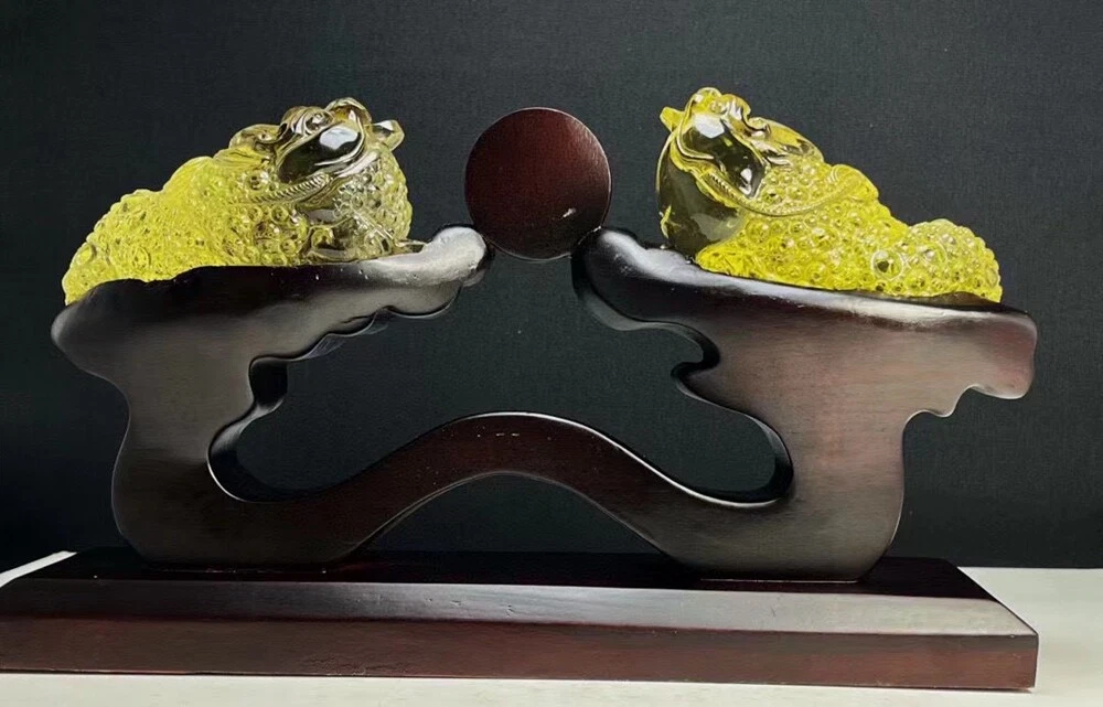 3LB Natural Citrine Quartz Golden Toad Skull Carved Crystal Gift