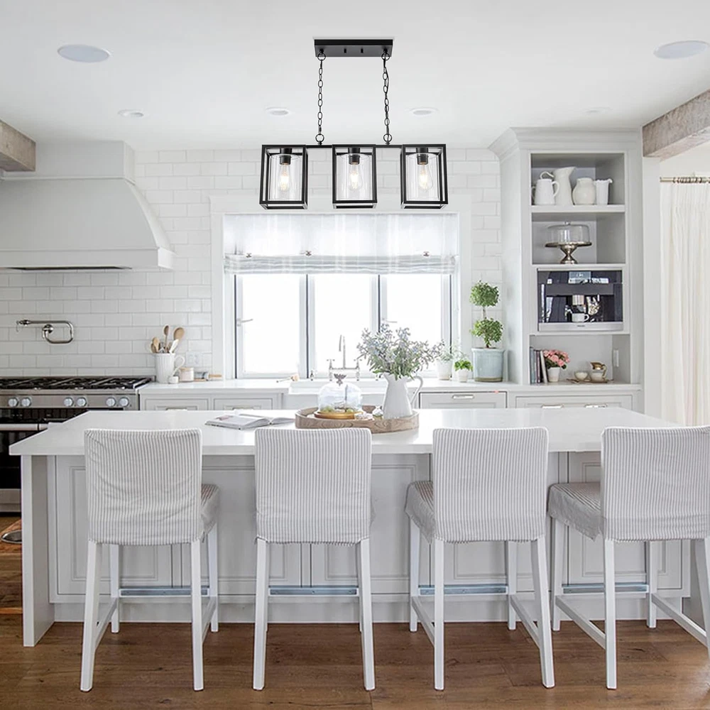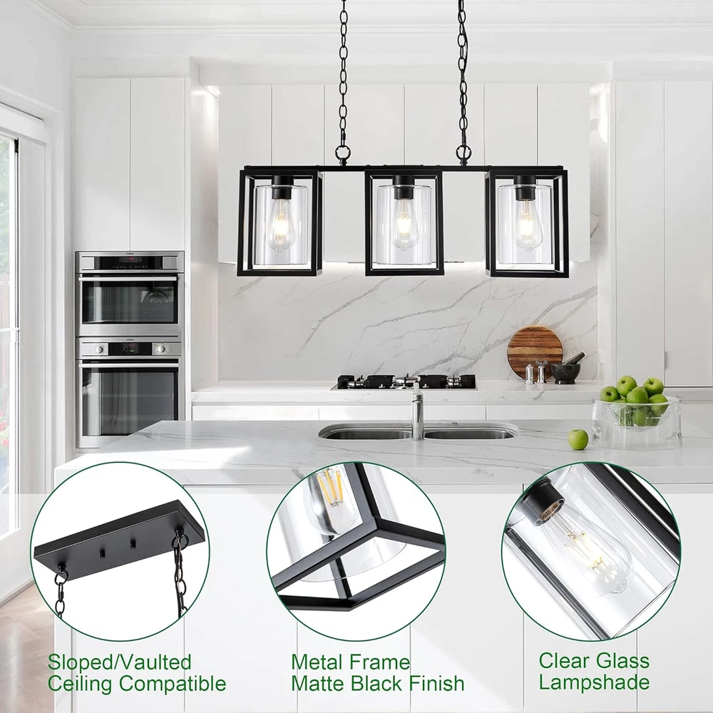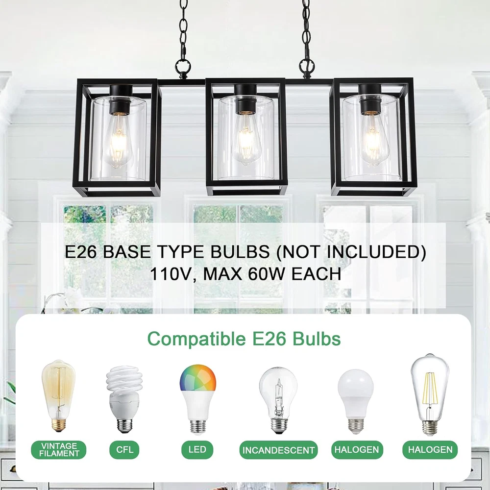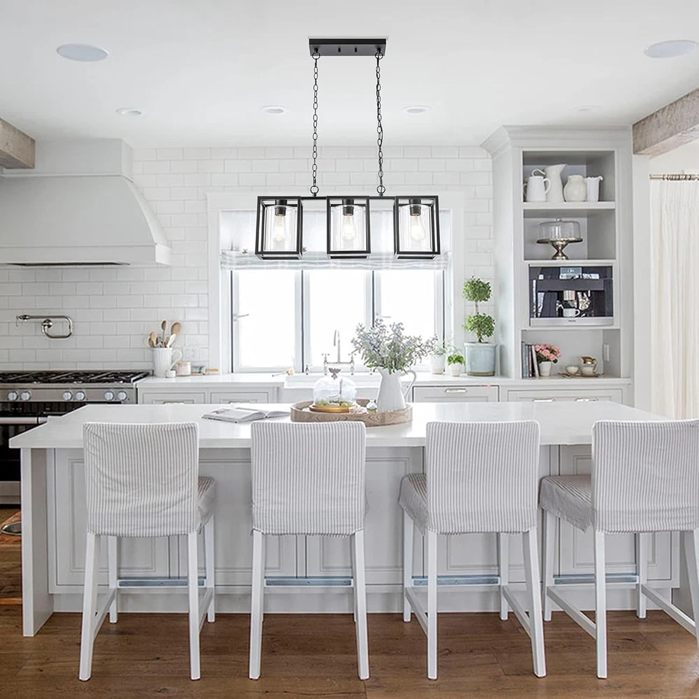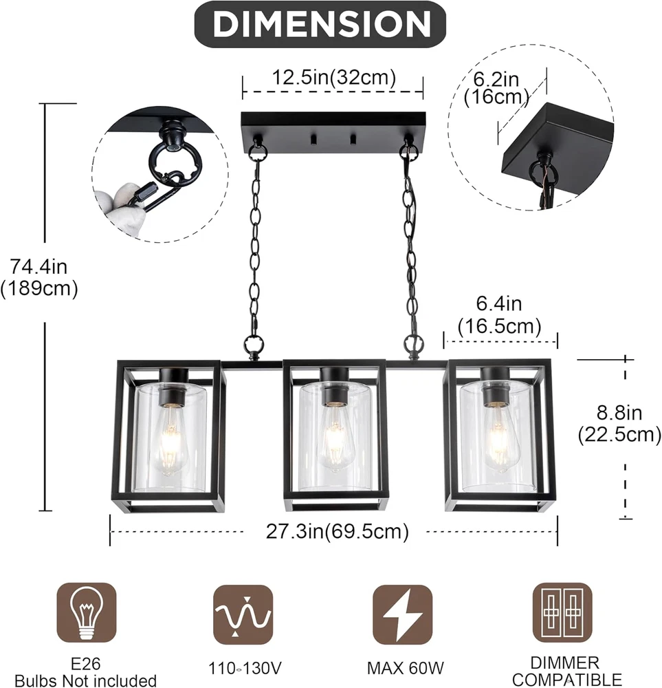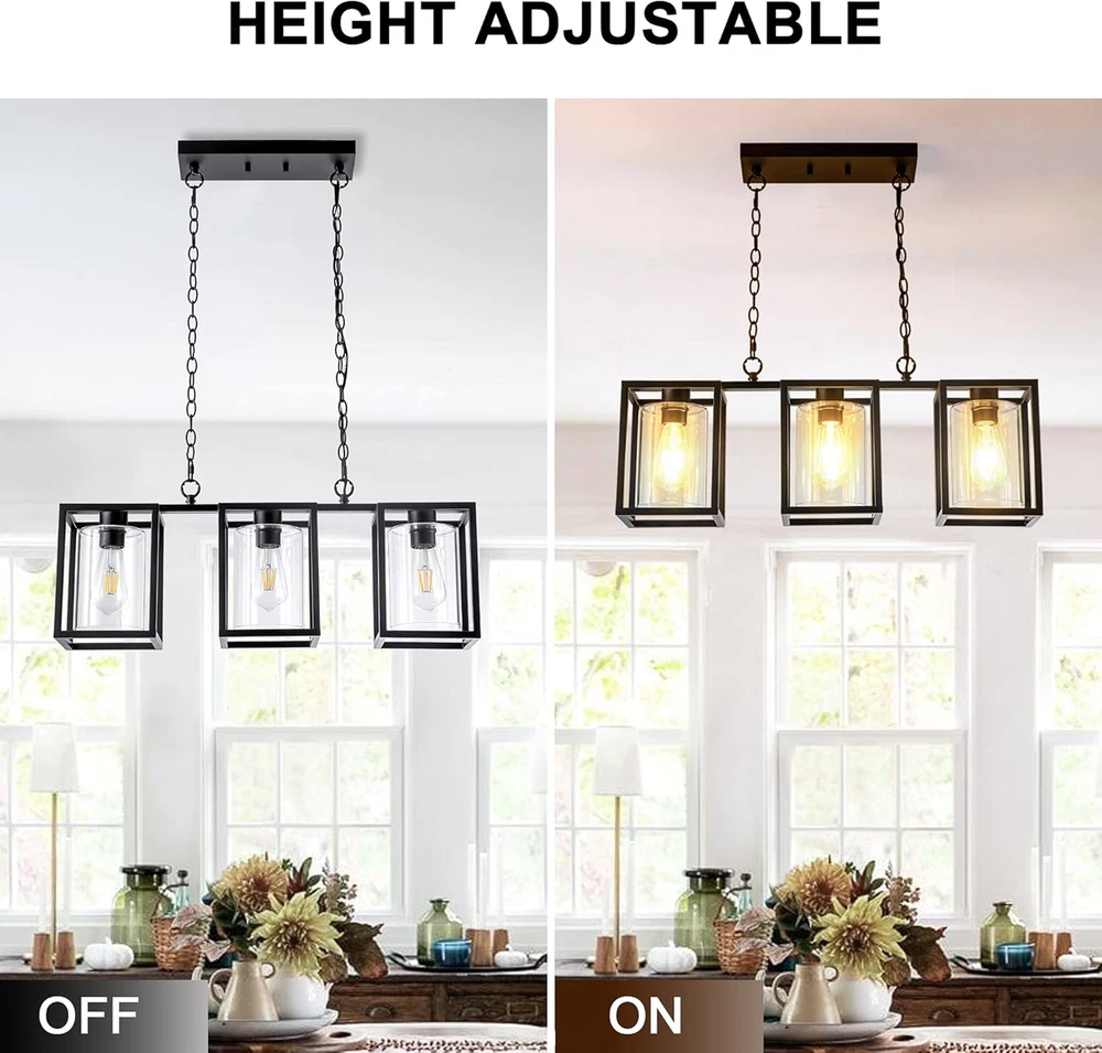 Store New Arrivals Add to Favorite View Feedback Contact 3-Light Farmhouse Kitchen Island Lighting, Black Industrial Rectangular Chandelier for Dining Room,Linear Pendant Light with Glass Shade for Dining Room Light Fixtures over Table Description Item model number YG-6633-3P-A08 Light Source Type Halogen, LED, Incandescent Style Modern Number of Items 1 Power Source Corded Electric Number of Light Sources 3 Control Method App Warranty Type Limited Batteries Included? No Lighting Method Adjustable Controller Type Push Button Unit Count 1.0 Count Room Type Lobby, Kitchen, Bedroom, Living Room, Study Room, Hallway, Dining Room Product Dimensions 27.3"L x 6.2"W x 66.2"H Material Metal Model Name YG-6633-3P-A08 Included Components Mounting Hardware Indoor/Outdoor Usage Indoor Bulb Base E26 Country of Origin China Batteries Required? No Item Weight 13.25 pounds Light fixture form Pendant Special Features Adjustable Height Special Feature Adjustable Height Part Number YG-6633-3P-A08 Shade Color Clear Mounting Type Ceiling Mount Color Black 3-Light Pendant Chain Wattage 60 watts Shape Square Voltage 120 Volts Shade Material Glass Fixture Type Non Removable 【Simple Design】This island lights a combination of transparent glass lampshade and sturdy metal frame, providing soft and bright light. Its sleek and unique design adds a minimalist style and industrial touch to your room. 【Adjustable Height】The maximum height of the black dining room light fixture is 74.4 inches. The height is adjustable, allowing you to adjust its length according to your needs and adapt to flat or sloping spaces. 【Bulb Requirements】The kitchen light fixture requires 3 E26 bulbs (max 60 watts - bulbs not included). It is compatible with LED, incandescent, CFL, and halogen bulbs. It can also be dimmable when used with dimmable bulbs and compatible dimmer switches. 【Easy Installation】Includes all installation hardware and instructions. The open design at the bottom makes it easier to replace light bulbs. The pendant light is perfect for farmhouse, pool table, kitchen island, bar, restaurant, dining table, and more. 【Great Service】If you encounter any questions or concerns, please via email and we will respond within 24 hours and resolve your issue. Product Description MAYNA Lighting brings to you the finest decorative lighting for your home or restaurant. This black pendant light is composed of industrial retro cage shape and modern glass lampshade, the collision of retro and modern style, creating unique stylish modernity for your restaurant/kitchen. Specification Style:Industrial retro & modern Material: Metal & Glass Color: Black Power: 60W Voltage:110V-130V Bulb Socket: 3*E26 (Bulbs are NOT included) Light Source: LED/Incandescent/CFL/Halogen Application Dining Room Kitchen Restaurant ABOUT US We offer the best prices around on high quality products. Our E-store includes media such as books, movies, music and games while offering electronics, toys, sporting apparel, clothing, tools, general home, garden items and more. SHIPPING We are always working hard to ensure your package arrives as soon as possible. Please understand that some factors like weather, high postal traffic, and the performance of shipping companies are outside of our control. We offer free shipping to the lower 48 states and ship within 2 business days of payment, usually sooner. We do not accept P.O. Boxes. Please provide a physical address. For shipping outside of the continental USA, we only use eBay's Global Shipping Program.The item is shipped to KY and then sent to the rest of the world. International customers are responsible for all duties and taxes. Continue to check out in order to calculate costs for shipping the item to your country. Messages regarding eBay's Global Shipping Program MUST be directed at eBay EXCLUSIVELY. RETURNS We offer a 30-Day Return Policy on items which you are not completely satisfied with. You have the option for a full-refund or an exchange of the item. No returns are available on items shipped outside of the USA. PAYMENT We accept PayPal. CONTACT US This page content is yet to come Please ad us to your favorite seller and visit again later Thank You CUSTOMER SATISFACTION We try our very best to make sure every customer is completely satisfied. If there's a problem, message us! We're happy to help. WE ACCEPT Copyright © 2021 AutoDS. | All Rights Reserved