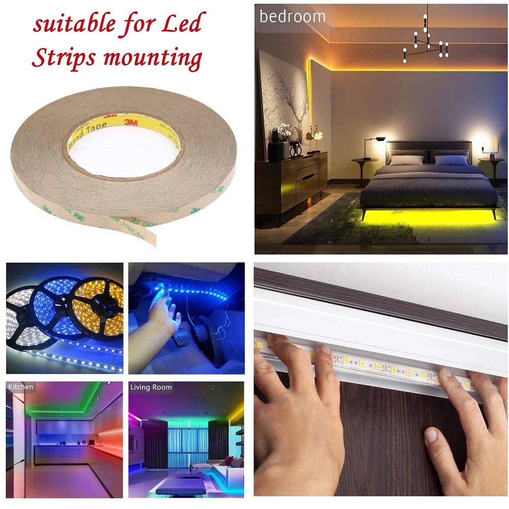 【3M High quality heavy duty double sided tape】- Proven Reliability from 3M 300LSE Mounting Tapes. Total 164Ft/55M, 0.31 Inch/8mm Width. With strength of 90 pounds per inch (longitudinal). High strength and durability. The stickiness will gradually increase over time and display perfectly after 24 hours. 【MULTIPURPOSE TAPE】 - fits for many occasions, such as signs, nameplates, wall hooks, scrapbooking, cards making, carpet fixing, wall decor like LED strip lights installing and posters / picture frame hanging, doors and windows decoration for home, school and office, automotive displays and personalized cars, etc. 【Waterproof Double Sided Tape】– Consists of a durable acrylic adhesive with viscoelastic properties, make the adhesive tape suitable for most surfaces, including installation outdoors or in damp locations. It can handle “harsh heat”. 【Easy to Put into Use】– This foam tape is easy to install, tear off the tape and stick it to the surface of the object. it bonds quickly and securely when it’s fully compressed. 【STRONG DOUBLE STICK TAPE】 - bonds to a wide variety of smooth and clean surfaces such as glass, metal, plastic, tile, wood, marble and more! Not suggested for wallpaper, fabrics, textured walls, brick, and other rough or non-stick surfaces.