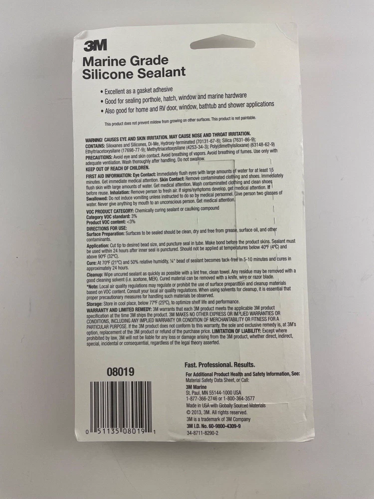 3M Marine Grade Silicone Sealant~Clear~08019~3 oz~Seals & Waterproofs~removable
