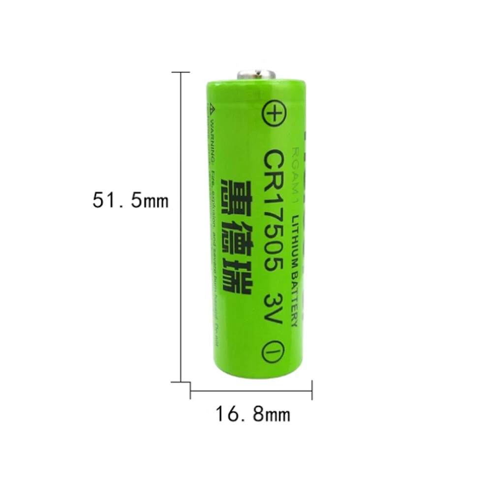 Parameter: Model: CR17505 Voltage: 3.0V Capacity: 2800mAh Size:51.5*16.8mm Battery type: non-rechargeable lithium battery Package include : 3pcs Battery