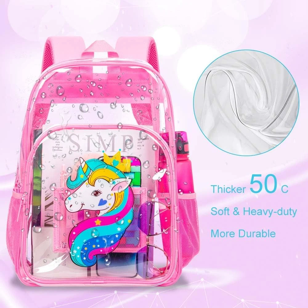 Store New Arrivals Add to Favorite View Feedback Contact 3PCS Clear Backpack for Girls, Kids Unicorn Transparent Bookbag Heavy Duty, Cute See through Backpacks with Lunch Bag - Pink Description Item model number C60 Age Range Description Kid Capacity Total 18 Liters Number Of Items 3 Color Unicorn Pink Product Dimensions 6 x 12 x 16 inches Item Weight 1.72 pounds Department girls UPGRADE MATERIAL--The material of this clear pvc backpack is customized by environmentally-friendly and cold resistant, It is safe for your health and you don't worry it will crack in cold winter. REINFORCED BASE--This clear backpack for girls reinforced the material under bottom, improve the bottom corner of the bookbag ripped apart problem. BACKPACK SET SIZE--The clear unicorn backpack set including bookbag--12.5"(L)x16"(H)*6.5"(W), lunch bag--9"(L)*8.8"(H)*2.5"(W), Pen Case--8.66"(L)x4.8"(H)*0.2"(W). Meet Your Daily Storage Needs. STADIUM APPROVED CLEAR BOOKBAG--This kids backpack made of heavy duty 0.5 mm Clear PVC, It's more strong and durdable. Transparent Backpack with Completely see through all around, including back. LARGE CAPACITY--This clear bookbag for girls with a large main compartment, as well as a spacious front zipper pocket for easy access to your most frequently used accessories and two mesh side pockets perfect. Product Description 16 Clear Backpack for Women Men Add to Cart Add to Cart Add to Cart Add to Cart Add to Cart Add to Cart Customer Reviews 4.4 out of 5 stars 8,580 4.4 out of 5 stars 8,580 4.4 out of 5 stars 8,580 4.4 out of 5 stars 8,580 4.4 out of 5 stars 8,580 4.4 out of 5 stars 8,580 4.4 out of 5 stars 8,580 Price $17.99 $ 17 . 99 $12.99 $ 12 . 99 $14.99 $ 14 . 99 — $13.99 $ 13 . 99 $12.99 $ 12 . 99 $12.99 $ 12 . 99 Backpack Size 12in*16in*6in 12in*16in*6in 12in*16in*6in 12in*16in*6in 12in*16in*6in 12in*16in*6in 12in*16in*6in Backpack Material heavy duty 0.5 mm PVC heavy duty 0.5 mm PVC heavy duty 0.5 mm PVC heavy duty 0.5 mm PVC heavy duty 0.5 mm PVC heavy duty 0.5 mm PVC heavy duty 0.5 mm PVC Adjustable Strap ✔ ✔ ✔ ✔ ✔ ✔ ✔ Easy clean ✔ ✔ ✔ ✔ ✔ ✔ ✔ Multi-pocket Design ✔ ✔ ✔ ✔ ✔ ✔ ✔ Heavy Duty Clear Backpack See Through PVC Backpacks for Kids. 3PCS Clear Backpack, Heavy Duty Transparent Bookbag, See Through PVC Backpacks for Boys Girls. Heavy Duty Clear Backpack See Through PVC Backpacks for Kids. 3PCS Clear Backpack, Heavy Duty Transparent Bookbag, See Through PVC Backpacks for Boys Girls. Heavy Duty Clear Backpack See Through PVC Backpacks for Kids. 3PCS Clear Backpack, Heavy Duty Transparent Bookbag, See Through PVC Backpacks for Boys Girls. 1 Clear Backpack for Girls 2 Clear Backpack for Girls 3 Clear Backpack for Girls Clear Backpack for Girls Boys This clear backpack for girls with a large main compartment, as well as a spacious front zipper pocket for easy access to your most frequently used accessories and two mesh side pockets perfect. Heavy Duty 0.5 mm PVC Clear Backpack This clear backpack for girls reinforced the material under bottom, improve the bottom corner of the bookbag ripped apart problem. Children's Printed Clear Backpack The video showcases the product in use. The video guides you through product setup. The video compares multiple products. The video shows the product being unpacked. The material of this clear pvc backpack is Cold-resistant material and cold resistant,you don't worry it will crack in cold winter. 16 Children's Backpacks for Boys Girls Backpack Size 12in*16in*5in Backpack Size 12in*16in*5in Backpack Size 12in*16in*5in Water Resistant splash-proof Water Resistant splash-proof Water Resistant splash-proof PACKAGE-3PCS School Backpack + Lunch bag + Pencil bag PACKAGE-3PCS School Backpack + Lunch bag + Pencil bag PACKAGE-3PCS School Backpack + Lunch bag + Pencil bag Is the backpack material waterproof? Our backpack is constructed by water resistant,But it's just splash-proof. What occasions is this clear backpack suitable for Attend soccer games, sporting events, concerts, parties, and holiday celebrations with this amazing see-through backpack that allows you to go through security without worry! How is the weight capacity of this clear backpack This kids backpack made of heavy duty 0.5 mm Clear PVC, reinforced the material under bottom, improve the bottom corner of the bookbag ripped apart problem,It's more strong. What is the capacity of this backpack? This clear bookbag for girls with a large main compartment, as well as a spacious front zipper pocket for easy access to your most frequently used accessories and two mesh side pockets perfect. ABOUT US We offer the best prices around on high quality products. Our E-store includes media such as books, movies, music and games while offering electronics, toys, sporting apparel, clothing, tools, general home, garden items and more. SHIPPING We are always working hard to ensure your package arrives as soon as possible. Please understand that some factors like weather, high postal traffic, and the performance of shipping companies are outside of our control. We offer free shipping to the lower 48 states and ship within 2 business days of payment, usually sooner. We do not accept P.O. Boxes. Please provide a physical address. For shipping outside of the continental USA, we only use eBay's Global Shipping Program.The item is shipped to KY and then sent to the rest of the world. International customers are responsible for all duties and taxes. Continue to check out in order to calculate costs for shipping the item to your country. Messages regarding eBay's Global Shipping Program MUST be directed at eBay EXCLUSIVELY. RETURNS We offer a 30-Day Return Policy on items which you are not completely satisfied with. You have the option for a full-refund or an exchange of the item. No returns are available on items shipped outside of the USA. PAYMENT We accept PayPal. CONTACT US This page content is yet to come Please ad us to your favorite seller and visit again lat