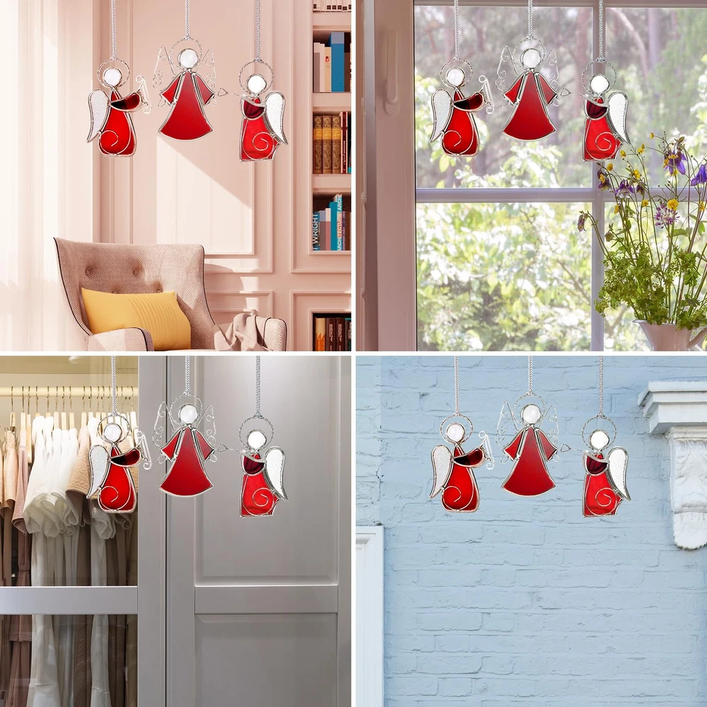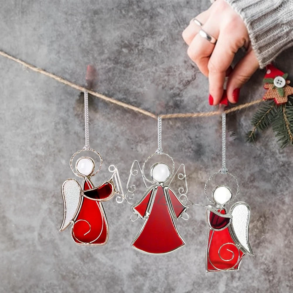 We often feel helpless and sad when we miss the deceased. We choose the Angel with the meaning of missing our loved ones. We hope that this Stained Glass Angel suncatcher bring the peace, love, and enduring connection of the love that never dies to you and your family, offering spiritual nourishment and hope to the elders. Those we love never leave; they are always with . Even if you can't see them or hear them, love and longing persist. Material: Stained Glass & iron Color: Red Style: Angel Size: 2.1" x 3.1" Occasion: Home Decor & Window Hanging,Christmas Tree Decoration Well packaged - With layers of foamed plastic wrap to prevent product damage. This suncatcher is a true stained-glass creation and not cheap painted glass. The soldering is precise and the finish on the foil is a uniform glossy brown. There were no rough spots on the soldering or the foi The colors are vibrant so it looks beautiful hanging in window or you could just use any hook, string, chain, etc. Very well made and catches the sun very well! Would make a very good gift. đăNice Cherish Giftă- Angel Stained-Glass Sun-Catcher Window Hanging ornament is a special way to cherish the memory of loved ones who have passed away.So the Angel sun catcher make a special gift for birthdays, Mother's Day, Christmas,sympathy gifts, memorial gifts, grief gifts, bereavement, or to comfort someone who is missing someone.When cardinals appear angels are near sun catchers đăReal Stained Glass NOT Acrylică- Handmade Angel suncatcher is real glass not acrylic as many suncatchers are.The colors are nice and bright and the details are pretty! Angel suncatcher with the sun shining through it, making the whole window look colorful, It is a good choice for home decoration,Christmas tree, whether hanging on the window or the wall. đăEasy to Hangă- Each stained glass Angel suncatcher ornament comes with a metal ring, you can use a string to hang it anywhere you want to decorate. It's a hassle-way to add a beautiful touch to any space.Wherever the place is - Christmas Tree, glass doors, kitchen window, upstairs windows, circle-head window, front window, bedroom window, kitchen door or as welcome signs on hanger stands. đăUnique Handmade Designă- Each red Angel sun catcher is crafted with high-quality stained glass and hand-cut pieces soldered together the tin foil method. The fired stained glass texture is different for each suncatcher, making it a -of-a-kind piece. đăPerfect SizeăEach Angel ornament size is 3.1âx2.1â, it is suitable to be hung on the window and walls,Christmas Tree or any place you want there to be amazing. It's hanging on door and looks so pretty with the sun shining through it.Please confirm the size is what you need before purchasing. Note: If you receive the product without stick hook, please the seller to it.
