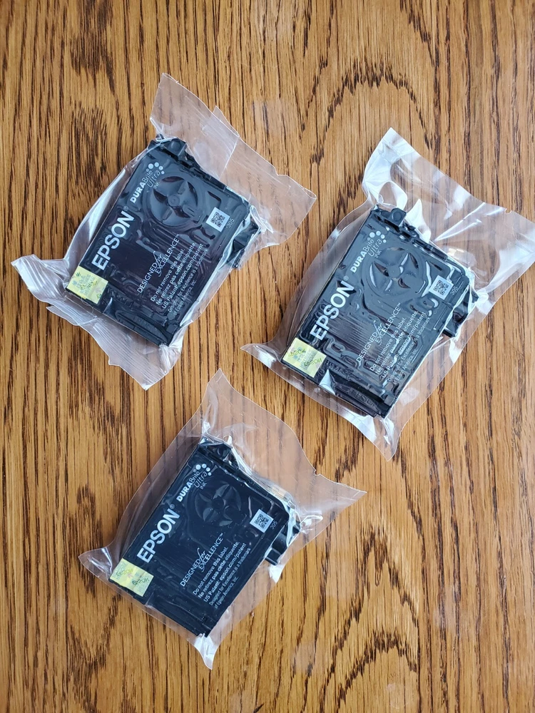 3 pk open box Epson 288 ink cartridges, 2 black, 1 yellow. Cartridges in original seal. Please review your printer model for compatibility prior to purchasing.
