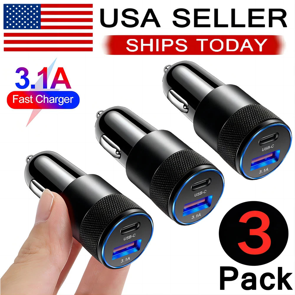 3Pack 2 Port PD USB-C Fast Charging Car Charger Adapter For iPhone For Samsung