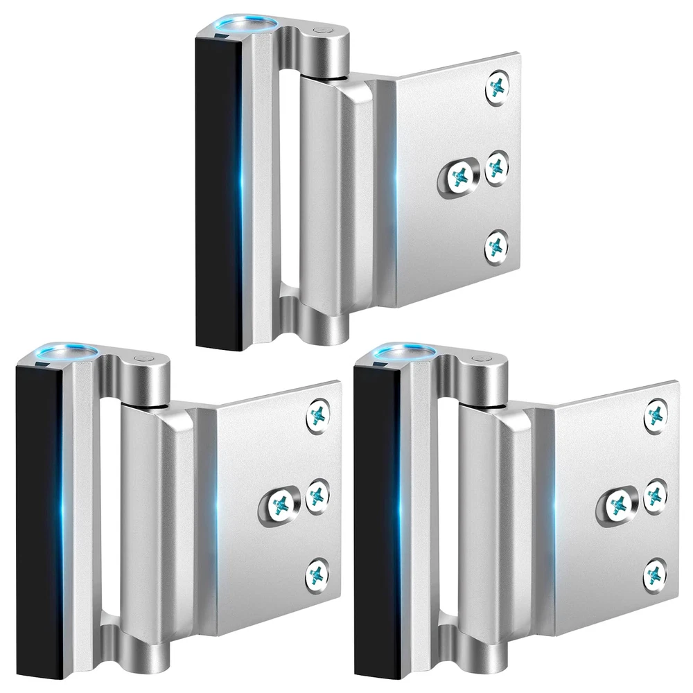 Upgraded Robust Security Design: door reinforcement lock is constructed from premium quality aluminum alloy and can withstand up to 800 lbs of force, making it 12-16 times stronger than a regular deadbolt against being kicked in. You may need 3 packs heavy-duty reinforcement door locks for your bedroom, front and back doors to prevent unauthorized entry, guard your home safe and protect your privacy. Super Easy to Install and Unlock in One Second: ez door lock includes detailed instructions and 8 strengthen scews, you can easily install the security door lock on the door frame within 5 minutes using a power screwdriver and drill. Metal reinforcement door lock upgraded groove design allows for swift locking and unlocking without requiring any tools, ensuring ease of operation, even in emergency. Child proof & Tamper-Resistant: child safety locks for doors features a spring-loaded mechanism that can be installed out of children's reach, prevent toddlers from opening the door to strangers or going out without permission. Moreover, the door safety locks from inside tamper-resistant features offer additional security against lock picking and bumping. Absolutely a must have door security devices in home security! Especiallly jam door lock for women who live alone and new parents. For Most Doors Opening Inward:door lock is suitable for most doors opening inward, this lock adds a robust layer of protection to your home, apartment, bedroom, front and back doors, as well as patio and courtyard doors. Please note: top door lock is not suitable for french double doors, garage doors, doors with gaps less than 0.07", outward opening doors, or doors with misaligned frames. It's an ideal gift choice for landlords, tenants, ladies, the elderly, pet owners, and new parents. Reliable After-sale Service: Secure home by , home security door lock defend your home safe, not only prevent break in but also easy open in emergency. swing door latch lock provide a 5 years after-sale service, ensuring that you can purchase and use our front door child safety lock with confidence. Whether you encounter any issues during installation or use, our professional french door lock stopper customer service team is always ready to assist.