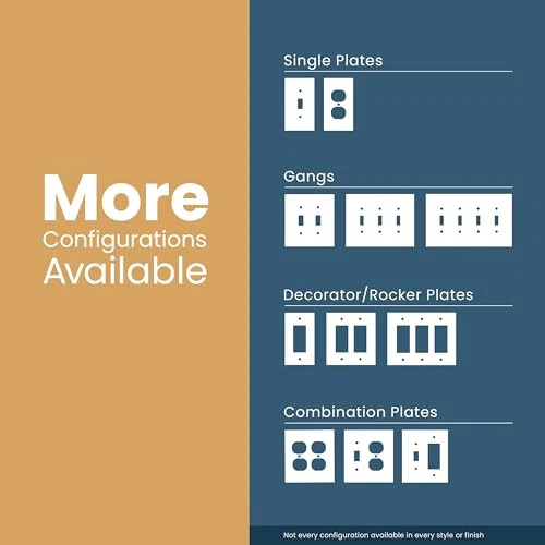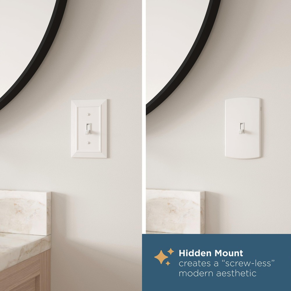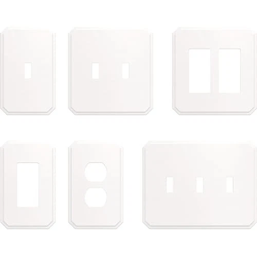 From , the Stepped Geometric wall plates have an informal style with soft lines and modest stepped details. Decorative outlet covers are a simple way to elevate your home decor. This multi-pack of single outlet covers is great for replacing your current covers, or for new construction. We offer a variety of wall plate configurations with on-trend designs and finishes. CONFIGURATION: 1-gang duplex/outlet wall plate cover FINISH: Pure white is a fresh, bright white MULTI-PACK: 3-pack outlet covers made of plastic and zinc plated steel STYLE: Add a decorative accent to any room with this stylish design WARRANTY: Confidently backed by a Limited Lifetime Warranty