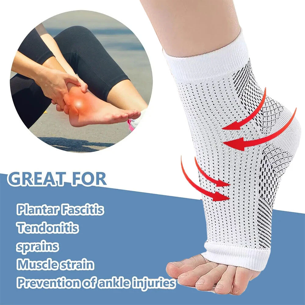 eBay Listing Template Compression Socks for Plantar Fasciitis,Achilles Tendonitis,Arthritis Relief 🌟 Revolutionary 7-Zone Compression Technology Experience targeted relief with medical-grade 20-30mmHg graduated compression that: ✅ Stimulates blood flow to reduce DVT risk ✅ Reduces swelling in ankles & feet within hours ✅ Alleviates plantar fasciitis & varicose vein discomfort ✅ Supports arches and heels during all-day activities Clinically Effective Design • Triple-layer compression zones for customized support • Breathable nylon/spandex fabric wicks moisture • Seamless invisible design under clothing • Machine-washable for easy care Anti Swelling Fatigue DVT Supports: Deep Vein Thrombosis (DVT) Varicose Vein Stimulation of blood circulation Soothes and relieves achy feet Reduction in swelling ⚠️ Directions of Use • Nylon/spandex. Machine washable.(Hand wash recommended for extended durability) • Wear 6-8 hours daily for best results • Consult doctor if you have circulation disorders • It provides three levels of compression in seven different zones. Just slip it on and the sleeve will relieve you from tired, achy feet and swollen ankles. • Feel the compression in your foot's ball, arch, plantar fascia, heel and ankle and immediately, you will feel a soothing relief. Package Contents: 3 Pairs Compression Ankle Socks Shoes Sizing Chart: S/M Women's Shoe size 6 - 8.5, Men's Shoe Size 5.5 - 8.5 L/XL Women's Shoe Size 9 -12.5 Men's Shoe Size 9 -12
