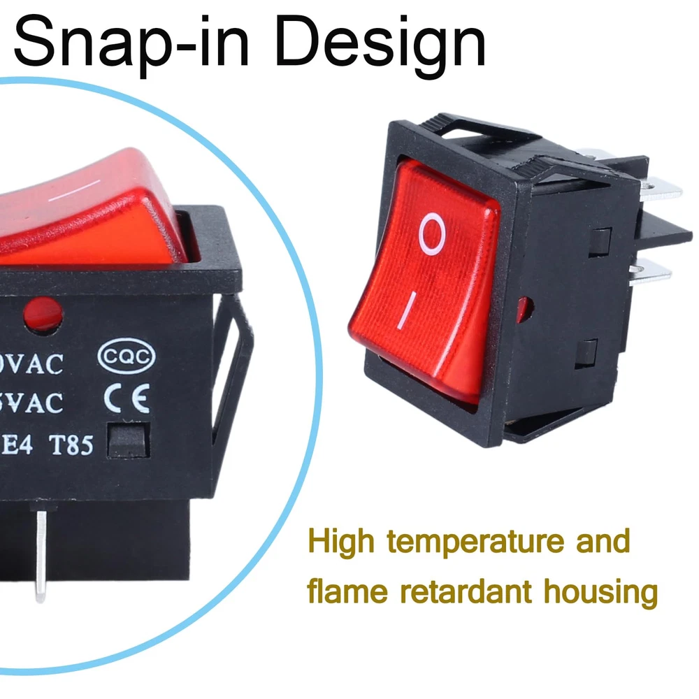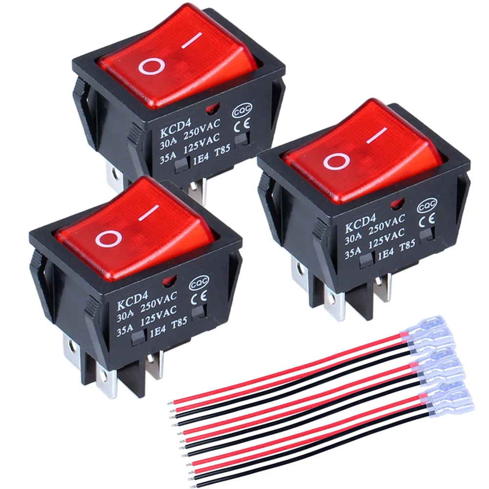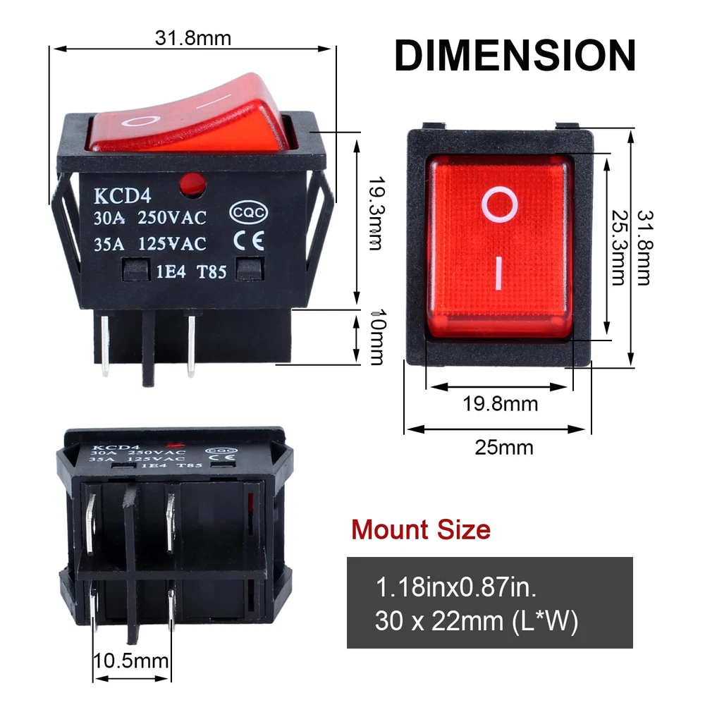 Store New Arrivals Add to Favorite View Feedback Contact 3Pcs 30A 250VAC/ 35A 125VAC Large Current Rocker Toggle Switch On/Off Switch DPST 4Pins Red Light Illuminated Toggle Switch 3Pcs 30A 250VAC/ 35A 125VAC Large Current Rocker Toggle Switch On/Off Switch DPST 4Pins Red Light Illuminated Toggle Switch Features: DPST contact type, ON OFF Self-Locking Switch, 4pin terminals Red Lighted Rocker Switch [Product Basic Parameters]:30A/250V AC, 35A/1V-125V AC Large Current toggle switch. So the switch can be used well on 3A, 10A, 16A, 20A, 30A at 120 Volt or 240 Volt. (The lighted Switch Lamp will light up to indicate the operating status of the device when the switch is turned ON at AC 110V to 250V input voltage). Size(Each One):32 x 25 x 34mm/ 1.25" x 0.98" x 1.34" (L*W*T), [Easy for Installaiton]: Snap in design; Mount Size : 27 x 21.5mm/ 1.06" x 0.85"(L*W); [Wide Application]:This mini rocker switch is widely used for various kinds of household appliances and DIY power control ,such as pannel DIY control, lights, water dispenser, treadmill, genertor, coffee pot, speaker, TV, row plug, massage machine, etc. [Product package]: 3pcs 4-Pin Red Light Illuminated rocker switches Product Description 30 Amp Rocker Switch 30A 250VAC Large Current Heavy Duty Rocker Switch can be used well on 3A, 6A, 10A, 15A, 16A, 20A, 25A, 30A at 120 Volt or 240 Volt. KCD4 ON-OFF Large Current 30A Rocker Switch Operation Type ON/OFF Latching Switch Contact Type DPST 4Pins Rating 30Amp 250VAC /35Amp 125VAC Mechanical life More than 50,000 cycles Long Life Service Mechanical Life: More than 50,000 cycles Electrical Life: More than 10,000 cycles Silver Alloy, Copper Pins Silver contact, increase the contact surface, and strengthen the load capacity Copper pins enhance electrical conductivity Spring installation: Lubrication setting, quick response, smooth press Snap-in Design Cut a hole according to the size, and then insert the product into the hole Mounting hole: 30mm×22mm (L×W), 1.18"×0.87" (L×W) This Large Current rocker switch is widely used for household appliances, such as electric welding machine, electric oven, heater etc. Item model number cfa9c0d3-70bf-433c-8c67-1e53d9b76f92 Current Rating 30 Amps Operating Voltage 120 Volts (AC) Mounting Type Snap In Mount Color Red 30Amp Country of Origin China Connector Type Crimp Switch Type Toggle, Rocker Material Plastic Terminal Dpst Operation Mode ON-OFF Actuator Type Rocker Circuit Type 1-way Contact Type Normally Open Package Dimensions 3.15 x 2.36 x 0.87 inches; 1.23 ounces Size Pin PRODUCT DIMENSIONS : 2.36 inches x 3.15 inches x 0.87 inches. Weight: 1.23 oz About Us Welcome to Perishey, your premier destination for high-quality products at unbeatable prices. Our commitment to excellence ensures that you receive top-notch service and premium items across a variety of categories. Our professional customer support team is always ready to assist you with any inquiries or needs, ensuring a seamless shopping experience. We take pride in serving you and strive to bring a smile to your face with our exceptional service and products. Visit our eBay store to explore our full range of offerings and discover the great deals we have in store for you. Thank you for choosing Laelegencia. Payment policy We have eBay Managed Payments, allowing you to pay with any payment method that eBay accepts. Please ensure that your shipping addresses are accurate. Immediate payment is required before we can send out your package. Shipping policy We are always working hard to ensure your package arrives as soon as possible. Please understand that some factors like weather, high postal traffic, and the performance of shipping companies are outside of our control. In most cases, your package will arrive before due time as it is a high priority for us. If there are any unexpected delays, please let us know and we will take care of it immediately. We have multiple locations in the US; residents of these states will be charged tax according to the state they reside in. Tax information is available at checkout. Returns We are committed to your happiness. That’s why we offer a 30-Day Return Policy on items that you are not completely satisfied with. You have the option for a refund or an exchange of the item. No returns are available on items shipped outside of the USA.
