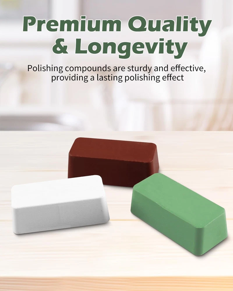 Store New Arrivals Add to Favorite View Feedback Contact 3Pcs Buffing Polishing Compound Kit, Metal Polish 12 Oz - Red Jewelers Rouge, White Diamond, Green Stainless Steel Polishing Compound Description Item model number A-19 Item dimensions L x W x H 3 x 2 x 2 inches Product Dimensions 3 x 2 x 2 inches; 11.89 ounces Material Animal Fat Country of Origin China Style 3Pack Grit Material Stainless Steel,Steel Grit Type Super Fine Brand AOKLIT Manufacturer AOKLIT Premium Quality & Longevity - These polishing compound are sturdy and effective, providing a lasting polishing effect,Say goodbye to that dull and aged look, and welcome a fresh high luster and shine that makes your treasures look brand new. User-friendly Design - Designed for easy application on buffing wheels, whether on motors, drills, or grinders, ensuring a hassle-free and efficient polishing experience. Adopting a thoughtful and humanized trapezoidal strip shape, it is more comfortable and convenient to use Easy To Use - Color-coded compounds, from coarse to super fine, allow for quick selection,Gently press the polishing agent onto the rotating polishing wheel , and are effortlessly applied to buffing wheels with heat and friction. Versatile Application - Suitable for a wide range of materials including aluminum, stainless steel, brass, jewelry, and metal polish, ensuring a smooth, mirror-like finish on diverse projects. Comprehensive Polishing Kit - Each buffing compound comes with multiple compounds(red, white, green) catering to various polishing needs, be it cutting, waxing, cleaning, repairing, or restoring, making it an all-in-one solution. Product Description AOKLIT Buffing Polishing Compound Kit key Feature: Our polishing compound providing a lasting polishing effect Easy to use, gently press the polishing agent onto the rotating polishing wheel Can meet various polishing needs, whether it is cutting, waxing, cleaning, repairing or repairing Suitable for a wide range of materials including aluminum, stainless steel, brass, and jewelry polish Package included: 1 Pack Green Polishing Compound 1 Pack White Diamond Buffing Compound 1 Pack Red Jewelers Rouge Polishing Compounds ABOUT US We offer the best prices around on high quality products. Our E-store includes media such as books, movies, music and games while offering electronics, toys, sporting apparel, clothing, tools, general home, garden items and more. SHIPPING We are always working hard to ensure your package arrives as soon as possible. Please understand that some factors like weather, high postal traffic, and the performance of shipping companies are outside of our control. We offer free shipping to the lower 48 states and ship within 2 business days of payment, usually sooner. We do not accept P.O. Boxes. Please provide a physical address. RETURNS We offer a 30-Day Return Policy on items which you are not completely satisfied with. You have the option for a full-refund or an exchange of the item. No returns are available on items shipped outside of the USA. PAYMENT We accept PayPal. CONTACT US This page content is yet to come Please ad us to your favorite seller and visit again later Thank You CUSTOMER SATISFACTION We try our very best to make sure every customer is completely satisfied. If there's a problem, message us! We're happy to help.