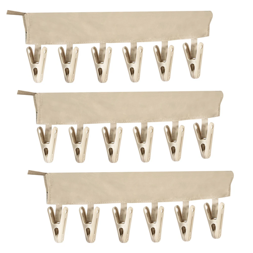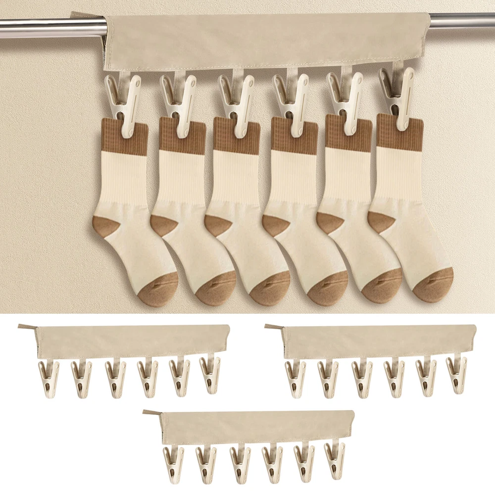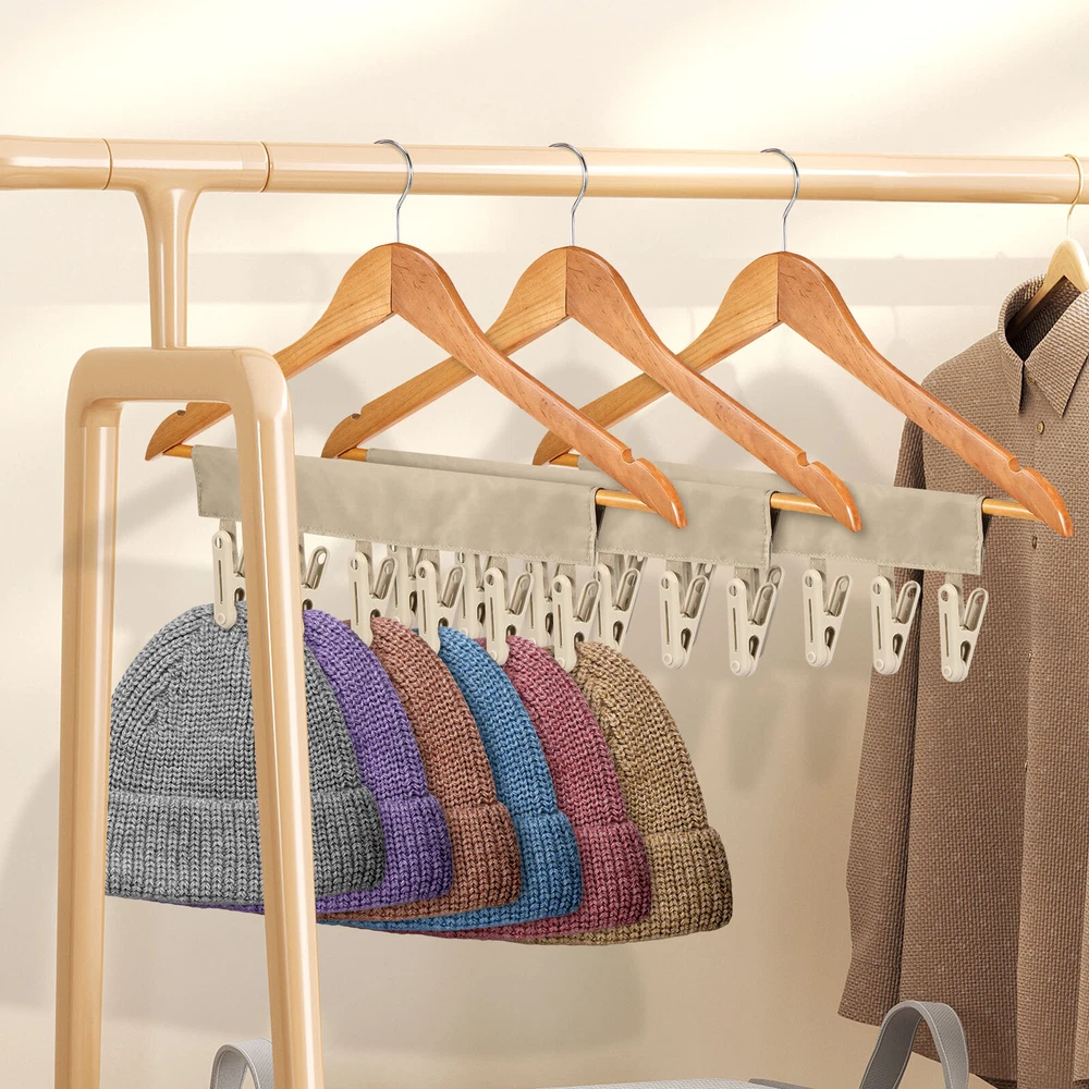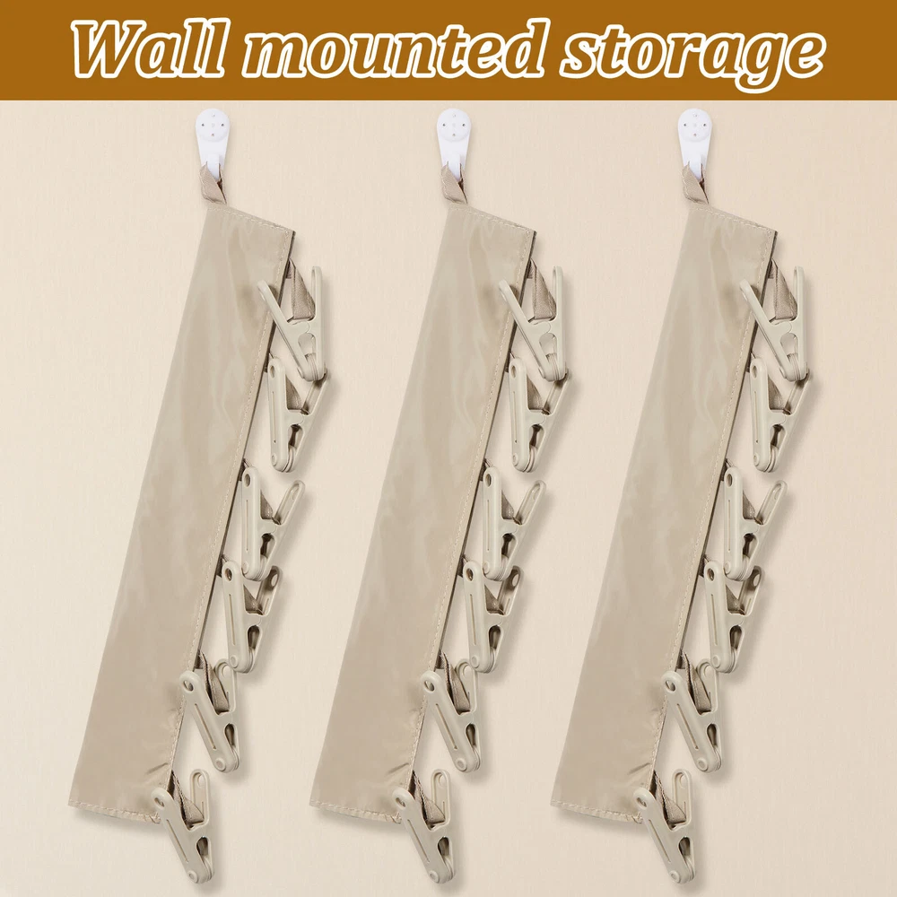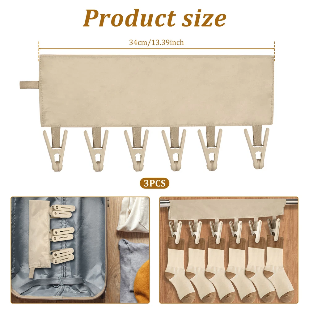 Parts List: 3 × Clothes Drying Hangers (6 Clips) Highlight description: Quality Texture: This clothes drying hanger is crafted from PP and polyester fabric, sturdy and enduring for long term use Portable: This foldable clothes drying clip is space saving and can be easily placed in suitcases, travel bags or backpacks, suitable for traveling carry on. In addition, it comes with a lanyard to hang on a hook or wall mount for storing 18 Clips: This set includes 3 clothes pegs with 6 clips each, total 18 clips for hanging towels, bras, underwear, panties, bathing suits, hats and other small items Easy to Use: This underwear hanger is designed with adhesive fixing, it can be easily installed on various hangers or poles, which can be used for both closet storage needs and balcony drying needs Wide Application: This clothes drying hanger is suitable for travelers or business trips, suitable for hotels, hostels or small living spaces. It can easily hang small items like hats, towels or ties to keep your living space neat and organized Detailed description: Description: This drying rack is crafted from PP and polyester fabric, sturdy and enduring. It features a foldable design that makes it easy to place in a backpack or suitcase, suitable for carrying on business trips or traveling. Each drying rack comes with 6 clips, you can easily hang small items like hats, towels or ties, very practical. Key Feature: Practical Clothes Drying Tool: This set includes 3 clothes drying clips, each clothes drying clips has 6 clips, total 18 clips, suitable for hanging small items like hats, towels or ties. Whether you are on a business trip, traveling or at home, you can easily meet your daily clothes drying needs. Specification: Product Name: Clothes Drying Hanger Material: PP + Polyester Color: Gray Size: Length: 34 cm / 13.4 inches Note: 1.There may be slight differences between the picture and the actual color of the commodity. We will try our best to show you the exact color. 2.Please allow slight dimension differences due to manual measurement.