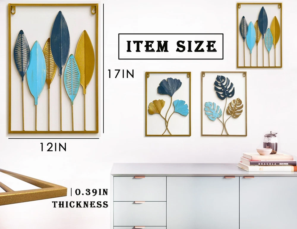 3Pcs Metal Wall Art Decor,Abstract Gold Wall Art Metal Leaf with Frame,17" x 12" Gold Metal Wall Decor for Living Room,Iron Artwork Wall Sculptures Hanging For Bathroom (Multicolor Product Details Color: 3PCS Multi-Color Greenleaf+Ginkgo+Monstera Size: 17 inch X 12 inch Brand: YZDTECH MPN: Does not apply UPC: Does not apply EAN: Does not apply Product Dimensions: 17 x 12 x 0.2 inches Item Weight: 1.5 pounds Manufacturer: YZDTECH Country of Origin: China Date First Available: January 6, 2024 Set of 3 Metal Wall ArtThis wall art comes with 3 different patterns metal decor(Multicolor Greenleaf+Ginkgo+Monstera).Sufficient quantity and various styles can fully match your different decorative needs.You can hang them individually or in groups for a unique display. High Quality MaterialMetal wall art decor is made of high quality iron, which is wear-resistant, not easy to bend or rust. The surface of wall sculptures is smooth and delicate. No need to worry about scratching your hand or the wall.Adding a great artistic atmosphere to your living room. Wide ApplicationThis nature-inspired wall art for living room are blends rustic and modern styles. They can be matched with various decorations, suitable for decoration in most occasions such as living rooms, bedrooms, bathrooms, kitchens, offices, conference rooms, etc. Suitable Size and Easy to Hang Each wall art decor is 17 X12 X 0.4inch.It is perfect size to match various space requirement. There are 2 hanging hole on the top of each metal decor.You can choose to display them with screws or nails on the wall. Customer Satisfaction GuaranteeThe outer frame is made of metal, which is very strong. The 3D metal leaves are tough and elastic, Please feel free to adjust it If there is any deformation. If you are not satisfied with our product, we guarantee replacement or refund. We will provide you with the best after-sales service. Goods Description: This beautiful style metal wall art can add visual dimension and depth with its modern abstract plant design. The outer frame is made of metal, which is very strong. The 3D metal leaves are tough and elastic, Please feel free to adjust it If there is any deformation. The metal wall decor can be used for your bedroom, living room, bathroom, and entrance walls, also it works for your office, and it's a perfect wall hanging for your modern home or office decor. Specification: Package Included 3PCS Multicolor Greenleaf+Ginkgo+Monstera home wall decor Color: Gold Size: 17 X12 X 0.4inch