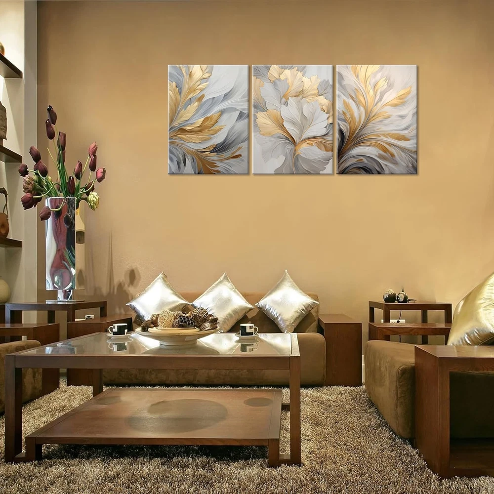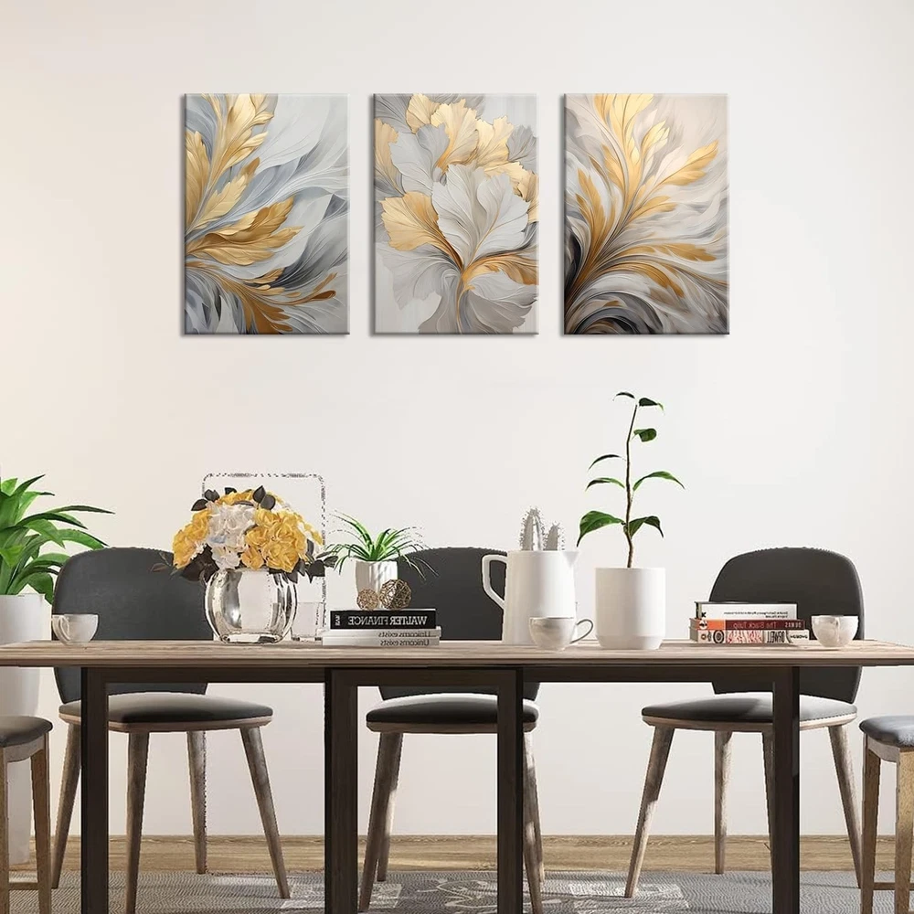 3Pcs Modern Abstract Golden White Leaves Canvas Wall Art Neutral Botanical Wall Decor Pictures Luxury Posters Prints for Living Room Bedroom Office Home Decorations, 16x24in Product Details Color: Abstract Size: 16x24in canvas Brand: NMT MPN: Does not apply UPC: Does not apply EAN: Does not apply Brand Name: NMT Material: canvas Item Weight: 2 Kilograms Size: 16x24in canvas Item Dimensions L x W: 24"L x 16"W Orientation: Landscape Color: Abstract Item Shape: Rectangular Pattern: Abstract Theme: Floral Frame Type: Wrapped Canvas Modern Abstract Canvas Wall Art: 16x24in(40x60cm), ready to hang Nordic Luxury Wall Decor: liven up your room with a pop of color or something to match the theme. Hang the vivid and colorful canvas on your blank wall to awaken your life. Neutral canvas art increases elegance to your home and highlights your artistic aesthetic. The vivid art prints can attract everyone's attention and create a comfortable and relaxed family atmosphere Neutral Plant Painting Pictures: Modern Aesthetic Canvas Painting, As A Unique Artistic Style, Complement The Wall Decoration Perfectly, Create A Calm And Relaxed Feeling. Is Perfect For Living Room Decoration, Wall Art For Bedroom, Bathroom Wall Decor, Kitchen Wall Decor, Home Wall Decor, Office Artwork Wall Decor, Hotel Wall Decor, Dining Room Wall Decor, Bar Etc Great Gift Idea: The Nordic Golden White leaves wall art is a versatile and heartfelt choice for family, friends, colleagues, or anyone you love. experience the warmth of life's vibrant colors together After-Sales Service: We offer you friendly customer service. If you have any questions about our plant wall art, please feel free to contact us
