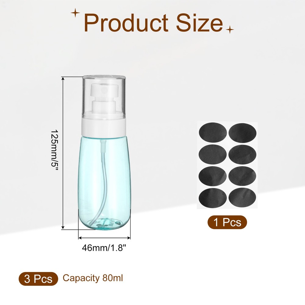 Document Description:PETG Material: Our small spray bottle is made of durable PETG material, which has the same transparency as glass, good gloss, corrosion resistance, and impact resistance. So our spray bottles can withstand repeated use without cracking or breaking.Leakproof Design: The compact spray bottles make it convenient for us to use, ensuring a tight sea. The screw cap features a screw-on design for easy spraying out and leak-proof performance with a transparent cap to prevent accidental presses.Fine Spray Nozzle: The bottles come with a fine spray nozzle that provides a distributed and even mist and will not clog with frequent use. When used, the mist is gently and evenly sprayed over your face.Wide Application: Suitable for various skin care products, cosmetics, and other liquids such as alcohol. They are versatile and suitable for hair styling, pet sprays, ironing and other tasks.Specification:Size: 125 x 46 mm/5 x 1.8 inches (H*OD)Capacity: 80ml/2.7 ozMaterial: PETGPackage Content: 3 Pcs Small Spray Bottles with Self Adhesive Label 3Pcs Spray Bottles, 80ml/2.7oz Travel Size Spray Bottle with Labels (Blue/Clear) Description: PETG Material : Our small spray bottle is made of durable PETG material, which has the same transparency as glass, good gloss, corrosion resistance, and impact resistance. So our spray bottles can withstand repeated use without cracking or breaking. Leakproof Design: The compact spray bottles make it convenient for us to use, ensuring a tight sea. The screw cap features a screw-on design for easy spraying out and leak-proof performance with a transparent cap to prevent accidental presses. Fine Spray Nozzle: The bottles come with a fine spray nozzle that provides a distributed and even mist and will not clog with frequent use. When used, the mist is gently and evenly sprayed over your face. Wide Application: Suitable for various skin care products, cosmetics, and other liquids such as alcohol. They are versatile and suitable for hair styling, pet sprays, ironing and other tasks. Specification: Size: 125 x 46 mm/5 x 1.8 inches (H*OD) Capacity: 80ml/2.7 oz Material: PETG Package Content: 3 Pcs Small Spray Bottles with Self Adhesive Label Hot Item Payment 1.We accept eBay payment . 2.Payment must be received within 7 business days of auction closing. Shipping 1.We ship to your eBay or Paypal address. Please make sure your eBay and Paypal address is correct before you pay. 2.Items will be shipped within 1-3 business day when we received payment. 3.Delivery time depends on destination and other factors. Description Policy 3Pcs Spray Bottles, 80ml/2.7oz Travel Size Spray Bottle with Labels (Blue/Clear) Description: PETG Material : Our small spray bottle is made of durable PETG material, which has the same transparency as glass, good gloss, corrosion resistance, and impact resistance. So our spray bottles can withstand repeated use without cracking or breaking. Leakproof Design: The compact spray bottles make it convenient for us to use, ensuring a tight sea. The screw cap features a screw-on design for easy spraying out and leak-proof performance with a transparent cap to prevent accidental presses. Fine Spray Nozzle: The bottles come with a fine spray nozzle that provides a distributed and even mist and will not clog with frequent use. When used, the mist is gently and evenly sprayed over your face. Wide Application: Suitable for various skin care products, cosmetics, and other liquids such as alcohol. They are versatile and suitable for hair styling, pet sprays, ironing and other tasks. Specification: Size: 125 x 46 mm/5 x 1.8 inches (H*OD) Capacity: 80ml/2.7 oz Material: PETG Package Content: 3 Pcs Small Spray Bottles with Self Adhesive Label Hot Item Payment 1.We accept eBay payment . 2.Payment must be received within 7 business days of auction closing. Shipping 1.We ship to your eBay or Paypal address. Please make sure your eBay and Paypal address is correct before you pay. 2.Items will be shipped within 1-3 business day when we received payment. 3.Delivery time depends on destination and other factors.
