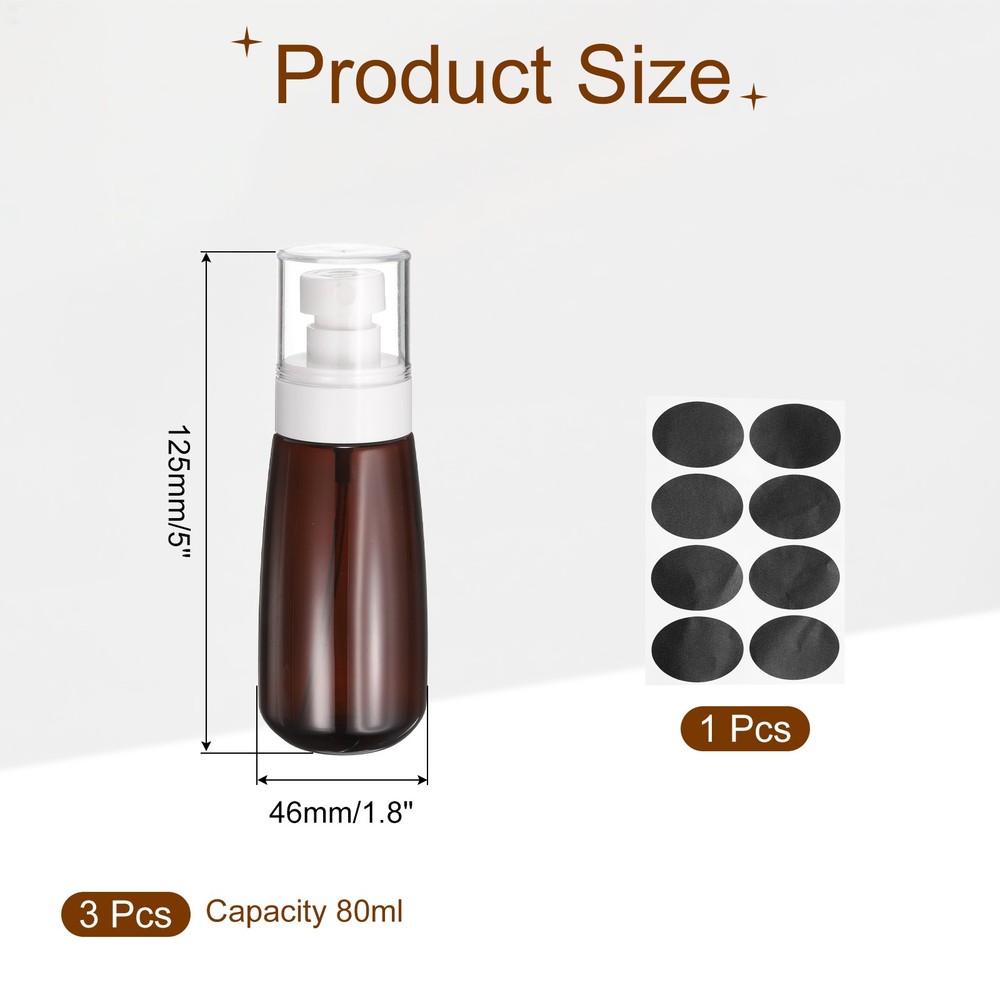 Document Description:PETG Material: Our small spray bottle is made of durable PETG material, which has the same transparency as glass, good gloss, corrosion resistance, and impact resistance. So our spray bottles can withstand repeated use without cracking or breaking.Leakproof Design: The compact spray bottles make it convenient for us to use, ensuring a tight sea. The screw cap features a screw-on design for easy spraying out and leak-proof performance with a transparent cap to prevent accidental presses.Fine Spray Nozzle: The bottles come with a fine spray nozzle that provides a distributed and even mist and will not clog with frequent use. When used, the mist is gently and evenly sprayed over your face.Wide Application: Suitable for various skin care products, cosmetics, and other liquids such as alcohol. They are versatile and suitable for hair styling, pet sprays, ironing and other tasks.Specification:Size: 134 x 46 mm/5.3 x 1.8 inches (H*OD)Capacity: 100ml/3.4 ozMaterial: PETGPackage Content: 3 Pcs Small Spray Bottles with Self Adhesive Label 3Pcs Spray Bottles,100ml/3.4oz Travel Size Spray Bottle with Labels(Brown/Clear) Description: PETG Material : Our small spray bottle is made of durable PETG material, which has the same transparency as glass, good gloss, corrosion resistance, and impact resistance. So our spray bottles can withstand repeated use without cracking or breaking. Leakproof Design: The compact spray bottles make it convenient for us to use, ensuring a tight sea. The screw cap features a screw-on design for easy spraying out and leak-proof performance with a transparent cap to prevent accidental presses. Fine Spray Nozzle: The bottles come with a fine spray nozzle that provides a distributed and even mist and will not clog with frequent use. When used, the mist is gently and evenly sprayed over your face. Wide Application: Suitable for various skin care products, cosmetics, and other liquids such as alcohol. They are versatile and suitable for hair styling, pet sprays, ironing and other tasks. Specification: Size: 134 x 46 mm/5.3 x 1.8 inches (H*OD) Capacity: 100ml/3.4 oz Material: PETG Package Content: 3 Pcs Small Spray Bottles with Self Adhesive Label Hot Item Payment 1.We accept eBay payment . 2.Payment must be received within 7 business days of auction closing. Shipping 1.We ship to your eBay or Paypal address. Please make sure your eBay and Paypal address is correct before you pay. 2.Items will be shipped within 1-3 business day when we received payment. 3.Delivery time depends on destination and other factors. Description Policy 3Pcs Spray Bottles,100ml/3.4oz Travel Size Spray Bottle with Labels(Brown/Clear) Description: PETG Material : Our small spray bottle is made of durable PETG material, which has the same transparency as glass, good gloss, corrosion resistance, and impact resistance. So our spray bottles can withstand repeated use without cracking or breaking. Leakproof Design: The compact spray bottles make it convenient for us to use, ensuring a tight sea. The screw cap features a screw-on design for easy spraying out and leak-proof performance with a transparent cap to prevent accidental presses. Fine Spray Nozzle: The bottles come with a fine spray nozzle that provides a distributed and even mist and will not clog with frequent use. When used, the mist is gently and evenly sprayed over your face. Wide Application: Suitable for various skin care products, cosmetics, and other liquids such as alcohol. They are versatile and suitable for hair styling, pet sprays, ironing and other tasks. Specification: Size: 134 x 46 mm/5.3 x 1.8 inches (H*OD) Capacity: 100ml/3.4 oz Material: PETG Package Content: 3 Pcs Small Spray Bottles with Self Adhesive Label Hot Item Payment 1.We accept eBay payment . 2.Payment must be received within 7 business days of auction closing. Shipping 1.We ship to your eBay or Paypal address. Please make sure your eBay and Paypal address is correct before you pay. 2.Items will be shipped within 1-3 business day when we received payment. 3.Delivery time depends on destination and other factors.