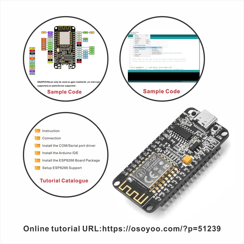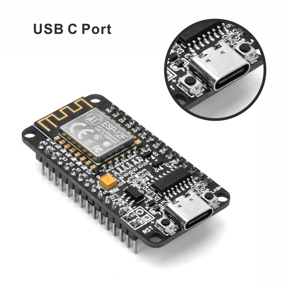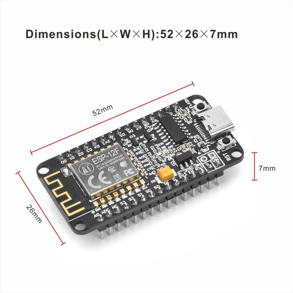 NodeMCU ESP8266 development board is based on ESP8266 micro controller (ESP-12F) with 802.11 b / g / n WLAN . This development board consists of: Built-in Flash: 32Mbit and serial chip is upgraded CH340C chip. The development board uses the USB-C port, making the transfer rate greatly improved, faster and more convenient to use This WiFi development board dimensions is 52mm x 26mmenables you comfortable prototyping by simple programming and breadboard-optimised construction .It can be used for Smart home, Intelligent building,Industrial automation. Powerful on-board storage and processing capabilities that allows it to be integrated with application-specific sensors and devices that require minimum load during run time. Power your development in the fastest way combinating with NodeMCU Firmware! We have tutorials that provides useful information on how to begin your project, it helps with a quick setup and saves time on the configuration process. We provide an array of application examples, full installation guides and libraries.