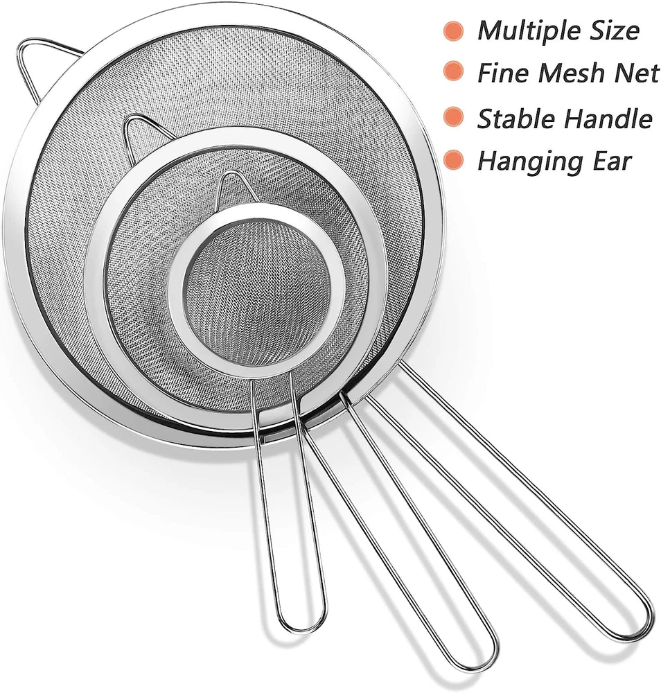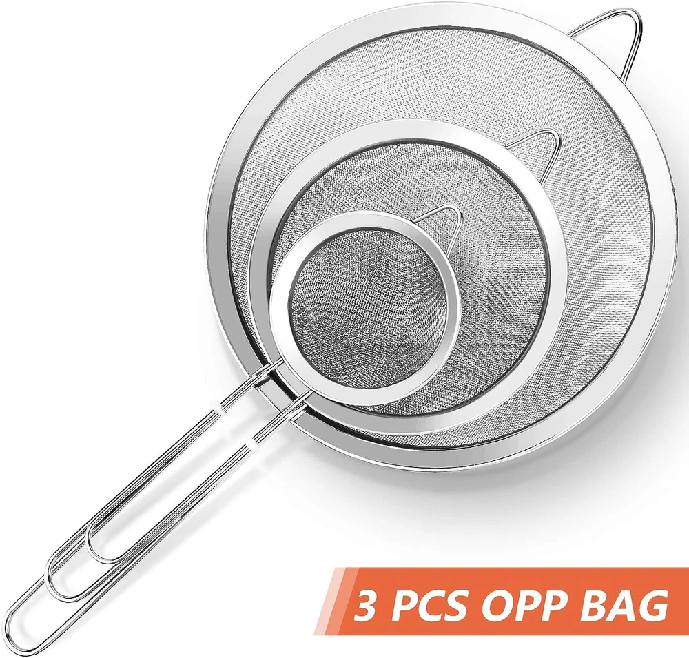 Store New Arrivals Add to Favorite View Feedback Contact 3 Pcs Super Wire Extra Fine Mesh Strainer with Handle, Small Medium Large Size Sifter Metal, Stainless Steel Sieve Strainers for Kitchen Rice Juice Quinoa Food Flour Baking Description Item model number 00385 Style Mesh Strainers Color Silver Product Dimensions 14.5"L x 7.87"W x 6"H Material Stainless Steel Country of Origin China Is Dishwasher Safe Yes Item Weight 7.6 ounces 3 Pcs Fine Mesh Strainer With Handle: Three diameters 3.15″ , 5.5″ & 7.87″, ensures that you always have the right strainer for the job. Super wire extra fine mesh strainer with handle are perfect for sifting and straining wet or dry ingredients, repeated use. High-Quality Strainers: Stainless steel sieve fine mesh strainers for kitchen rice juice quinoa food flour baking, made of high-quality, food-grade 304 stainless steel that won't rust or bend. And so strainers are durable and sturdy, built to last, for a wide range of needs in the kitchen. Versatile For Use: Small medium large size sifter metal strainer set, whether you need to drain, strain or sieve then you will achieve excellent results with our kitchen strainers. For kitchen rice, juice, quinoa, food, flour, baking, vegetables, tea, rinsing fruits, straining pasta, noodle, salad, gravy, coffee, colander, fryer, skimmer, drainer etc. Easy to Clean and Store: Super wire extra fine mesh strainer with handle twill mesh. Safety: mirrored, burr-free mesh screen won't scratch your hand while you clean it. Easy cleaning, you just need to simply put it in a dishwasher or rinse under water and let it dry. so kitchen strainer can be hung or stacked for easy storage, dishwasher safe! SATISFACTION GUARANTEED: Our team is committed to providing every customer with good stainless steel sieve fine mesh strainers for kitchen rice juice quinoa food flour baking and satisfactory service. If there are any problems with our small medium large size sifter metal strainer set, and we would be very happy to solve your problems. Be sure to Add to Cart. We focus on premium stainless steel sieve fine mesh strainers for kitchen rice juice quinoa food flour baking. Super wire extra fine mesh strainer with handle help you In kitchen, sifting flour, grains, pasta, vegetables, smoothies, draining fruits etc. We are aware of your needs and knowing you are long for better small medium large size sifter metal strainer set! We hereby demonstrate our premium small medium large size sifter metal strainer set for you. Product Description: Color: Silver Weight: 7.58 oz/215g Material: Food-Grade 304 Stainless Steel Size: Large: Diameters: 7.87inches/20cm. Depth: 2.36 inch/6cm, Long: 14.5inch/36.8cm, Weight: 4.2oz/120g Medium: Diameters: 5.5inches/14cm. Depth: 1.97 inch/5cm, Long: 11.1inch/28.3cm, Weight: 2.15oz/61g Small: Diameters: 3.15 inches/8cm. Depth: 1.38inch/3.5cm, Long: 8 inch/20.3cm, Weight: 1oz/30g SATISFACTION GUARANTEED: Our team is committed to providing every customer with good stainless steel sieve fine mesh strainers for kitchen rice juice quinoa food flour baking and satisfactory service. If there are any problems with our Small Medium Large Size sifter metal strainer set, and we would be very happy to solve your problems. Be sure to Add to Cart. Package Included: 1 Pcs Large fine mesh strainer with handle 1 Pcs Medium fine mesh strainer with handle 1 Pcs Small fine mesh strainer with handle ABOUT US We offer the best prices around on high quality products. Our E-store includes media such as books, movies, music and games while offering electronics, toys, sporting apparel, clothing, tools, general home, garden items and more. SHIPPING We are always working hard to ensure your package arrives as soon as possible. Please understand that some factors like weather, high postal traffic, and the performance of shipping companies are outside of our control. We offer free shipping to the lower 48 states and ship within 2 business days of payment, usually sooner. We do not accept P.O. Boxes. Please provide a physical address. For shipping outside of the continental USA, we only use eBay's Global Shipping Program.The item is shipped to KY and then sent to the rest of the world. International customers are responsible for all duties and taxes. Continue to check out in order to calculate costs for shipping the item to your country. Messages regarding eBay's Global Shipping Program MUST be directed at eBay EXCLUSIVELY. RETURNS We offer a 30-Day Return Policy on items which you are not completely satisfied with. You have the option for a full-refund or an exchange of the item. No returns are available on items shipped outside of the USA. PAYMENT We accept PayPal. CONTACT US This page content is yet to come Please ad us to your favorite seller and visit again later Thank You CUSTOMER SATISFACTION We try our very best to make sure every customer is completely satisfied. If there's a problem, message us! We're happy to help. WE ACCEPT Copyright © 2021 AutoDS. | All Rights Reserved