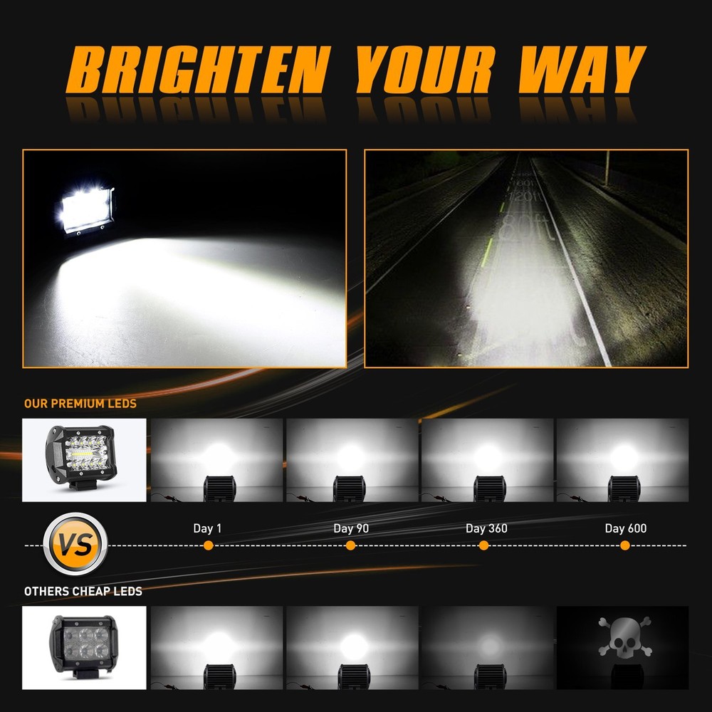 Application: Compatible with: Jeep, Pickup, UTV, JK, JL, ATV, SUV, Ford, Truck, Sport Utility, RV, A6, A4, GMC, Honda, Boat, Nissan, Toyota, BMW, Ranger, Land Rover, Chevrolet. Specifications: Product: 4-inch LED Work Light Bar Combo Beam Condition: New Power: 60W Dimensions: 4 inches Operating Voltage: 9-32V DC Lumens: Approximately 6000lm Light Color: White (6000K) Beam Type: Spot & Flood Combo Working Temperature: -40 to 85℃ Lens Material: PC Waterproof Rating: IP68 Certifications: CE/RoHS/IP68 Fitment Type: Direct Replacement Body Material: Aluminum Housing Lifespan: 50,000 hours Placement on Vehicle: Front, Right, Left, Rear Tow Hitch Mount: Color: Black Material: Aluminum alloy Total Length: 287mm (11.3”) Installation: Instruction not included; easy installation with simple hand tools Features: Universal rear tow hitch mounting bracket for dual LED road lights Construction: High-strength material and heavy-duty design ensure excellent performance and longevity Compatibility: Universal dual mounting points suitable for cube/pod LED lights, such as backup reverse lights, search lights, or rear fog lights. Features: High-Performance Material: Crafted with high-brightness, low-energy consumption LED lamp beads. Constructed with space aluminum and a high-tech cooling system to provide maximum brightness while stabilizing heat and extending product life. Rigorous Testing: Each product undergoes strict quality inspection to ensure customers receive a flawless item. Package Includes: 2x Combo 4-inch LED Work Light Pods 1x Tow Hitch Mount Mounting Brackets and Screws 1x Wiring Kit (2 leads)