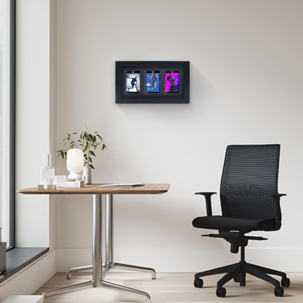 PSA Graded Card Display Case Wall Mount Holds 3 Black Frame