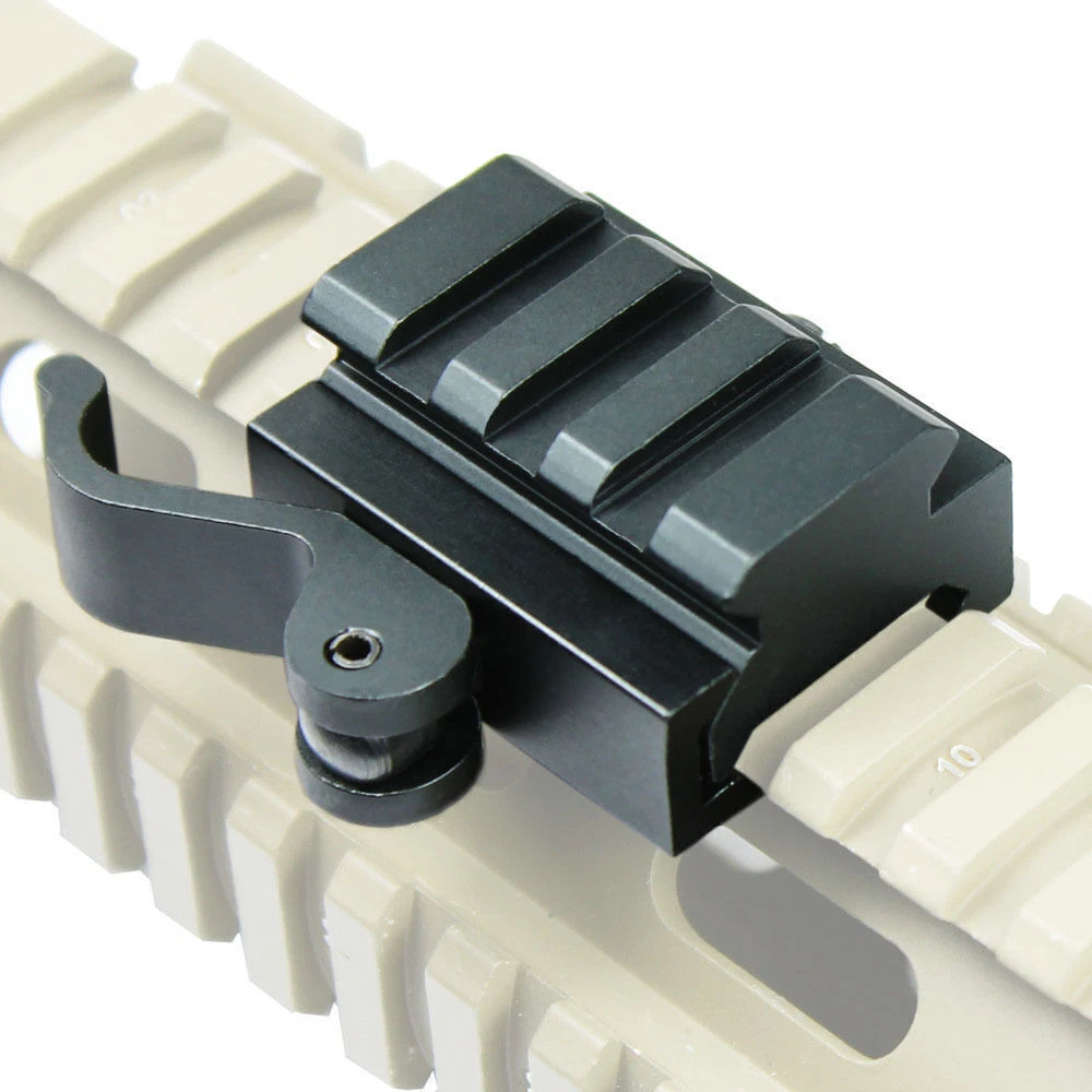 Quick Release 1/2 Inch Rail Riser :: Features · Raise flat rail line or sight by 1/2 inch · Locks securely in place with quick release lock. · Easy to install and detach, no tools needed · Fit standard 20mm Picatinny rails · Durable all metal construction · Lightweight, made of aluminum with black anodized matte finish · Adjustable locking tension :: Specifications Dimensions 1" (H) 1.5" (L) 30 mm (W) Weight 2.2 oz / 63 g Material Aluminum, Steel Finish Black matte Interface 20mm Picatinny / Weaver Rails :: Items Included 1. One (1) 1/2" rail riser / mount ( Rail Base is NOT Included. Picture for Reference Only. ) 100Pcs Blue Heat Shrink Female Crimp Wire Connectors Spade 16-14 Gauge Marine 11.9 USD Free shipping 50~200Pcs Heat Shrink Ring Terminals 12-10 GA Gauge Marine Wire Crimp Connectors 8.9 USD Free shipping Tactical PEPR style Cantilever Rifle Scope Mount with 30mm-1" Reducer Adapters 15.09 USD Free shipping 1 Pair 25.4mm/1'' Ring Mounts High Profile for Rifle Scope Dovetail Rail Mount 7.9 USD Free shipping One Pair of 1" Laser / Scope Ring Mount for 10mm Dovetail Rail - High Profile 6.95 USD Free shipping Tactical M-LOK Offset Mount 1" Ring Mount for Flashlight Scope MLOK Rail 6.9 USD Free shipping Scope Barrel Mount 1" 25mm 30mm Ring Adapter with 20mm Weaver Picatinny Rail 6.79 USD Free shipping Dual Ring 1''/30mm Cantilever Scope Mount Rings For Rifle Picatinny Rail Weaver 11.9 USD Free shipping 45 Degree Offset Rail Mount 4 Slots 55mm Width For Picatinny Weaver Top Rail 7.95 USD Free shipping 2 PCS High Profile 1" Scope Ring See Through Laser Scope Mount for Picatinny 6.95 USD Free shipping 2Pcs 5-Slot Quick Release Detach QR QD 1/2" Riser Mount for Picatinny Rail 13.59 USD Free shipping 1 Pair 30mm Scope Rings Mount Set High Profile for Rifle Picatinny Weaver Rail 7.9 USD Free shipping For Mossberg 500 Remington 870 12GA 1" Mag Tube Picatinny Laser Mount 2 Pack 11.9 USD Free shipping 2 Pack For Mossberg 500 Remington 870 12GA 1" Tube Picatinny Weaver Laser Mount 11.9 USD Free shipping Ultralight Flip Up Sight 45 Degree Offset Rapid Transition Front and Backup Rear 15.9 USD Free shipping For Mossberg 500 Remington 870 12GA 1" Tube Picatinny Laser Torch Mount 6.9 USD Free shipping 1" High Profile Compact Riser Mount 3 Slot Fit Riflescope Picatinny Weaver Rail 7.59 USD Free shipping 3 Slots Compact Riser Mount for Scopes- Low/Medium/High Profile Picatinny Rail 7.49 USD Free shipping