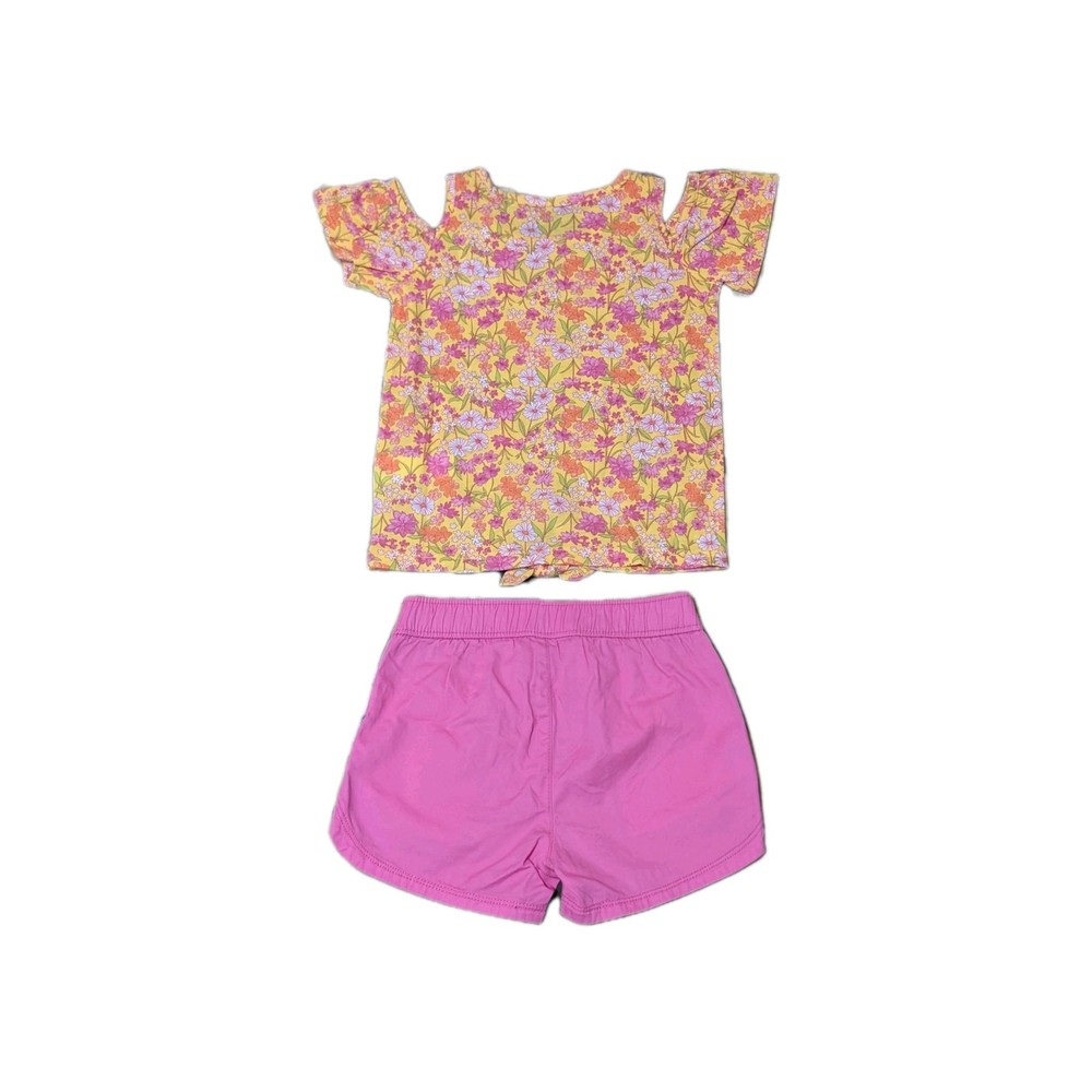 Get your little girl ready for summer with this adorable 2-piece outfit from The Children's Place. The set includes a colorful flower-themed T-shirt with short sleeves and a comfortable pullover shorts. Both pieces are made from a soft cotton blend material that is perfect for all seasons. The multicolor outfit is perfect for casual occasions and can be easily cared for with machine washing. This shorts set is available in size 4T and is ideal for toddler girls. Add this cute and comfortable outfit to your little girl's wardrobe today! Free Shipping from Cincinnati, Ohio.