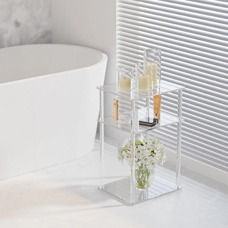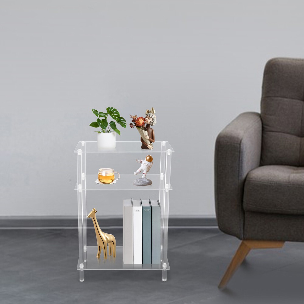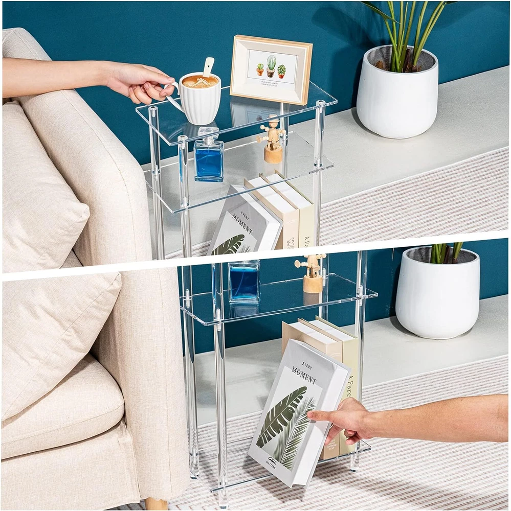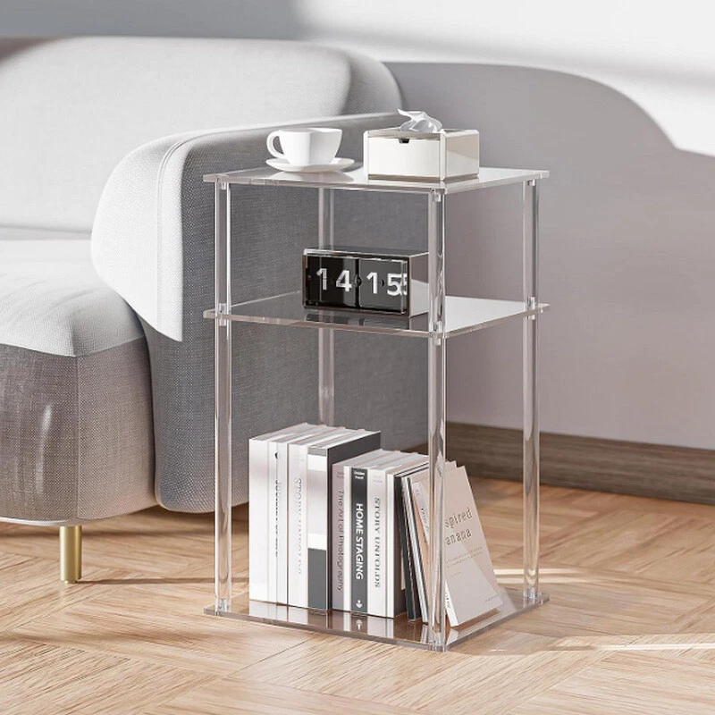 2 Tires Clear Side End Table Acrylic Coffee Table for Living Room Bedside Table