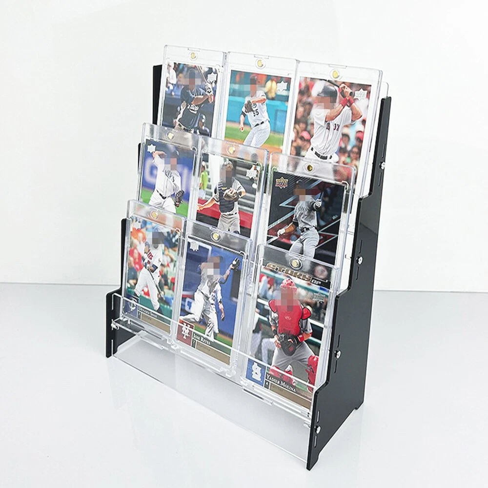 Product Description Features: Quality Acrylic: This cards display shelf is made of quality acrylic, sturdy and enduring, not easy to break. And the cards display shelf is carefully crafted, the edges features smooth, no hurts to hands 3 Tiers: The cards display shelf features 3 tiers design . The cards display shelf is ideal for precious collection displaying. Also, suitable for shop counters Easy to Access: The cards display shelf features clear that allows to clearly see and access the cards you are displaying. Also, the cards display shelf can protect your sports cards or collectibles Easy to Install: The cards display shelf is easy to install. And it will securely hold your precious sports or collectible cards on the compartment. Not easy to slip and no need to worry the cards getting damaged Ideal Gift: This cards display shelf is an ideal gift for fan of football; baseball; enthusiasts; basketball or a trading or game card collector. Ideal to showcase your sports card collection Specification : Material : Acrylic Size : 240*100*260mm Package included: 1 x Acrylic Trading Card Display Stand (Not included cards)