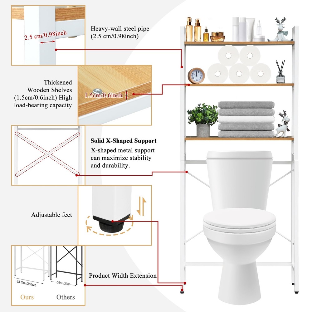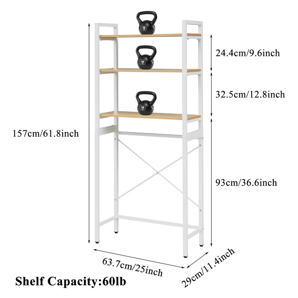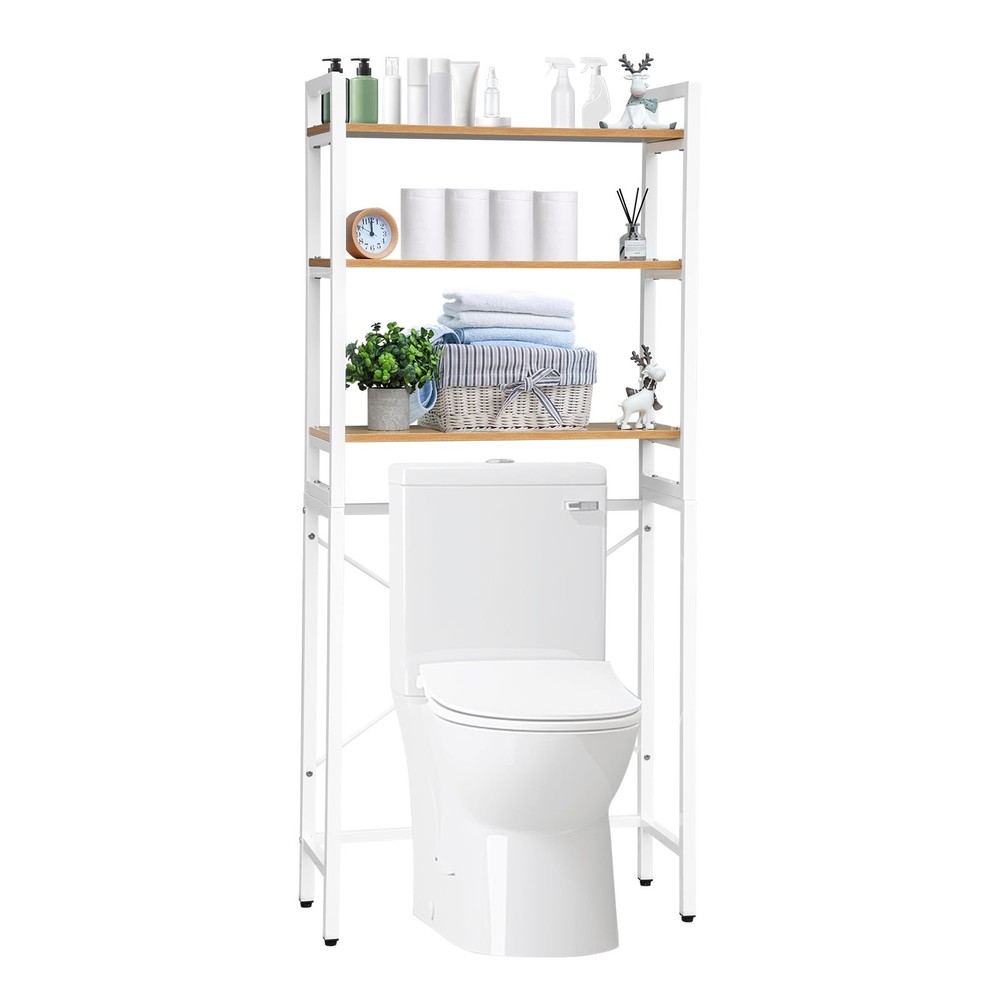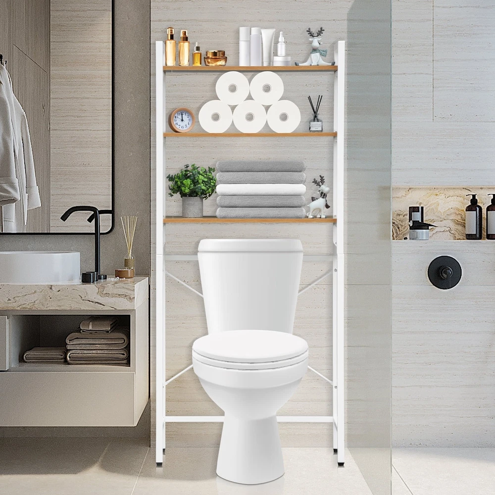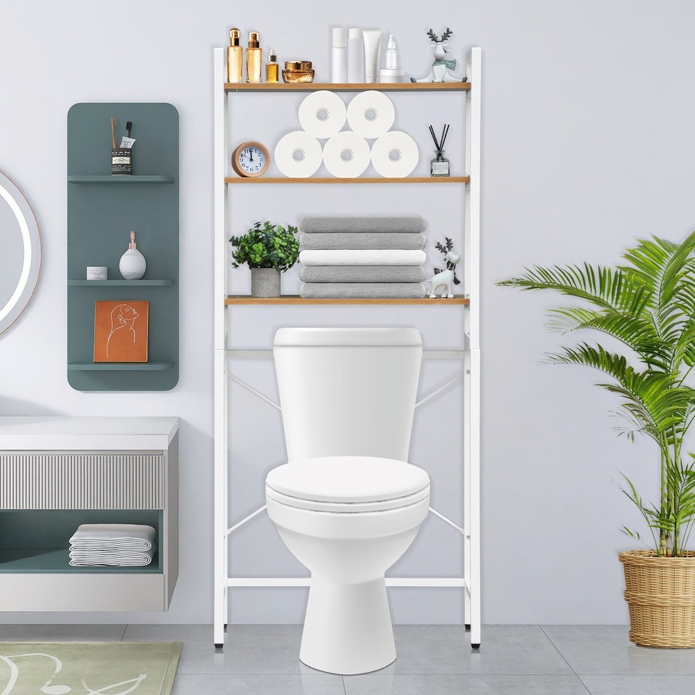3-Tier Over The Toilet Storage Rack, Steel White Bathroom Shelf Space Saver,