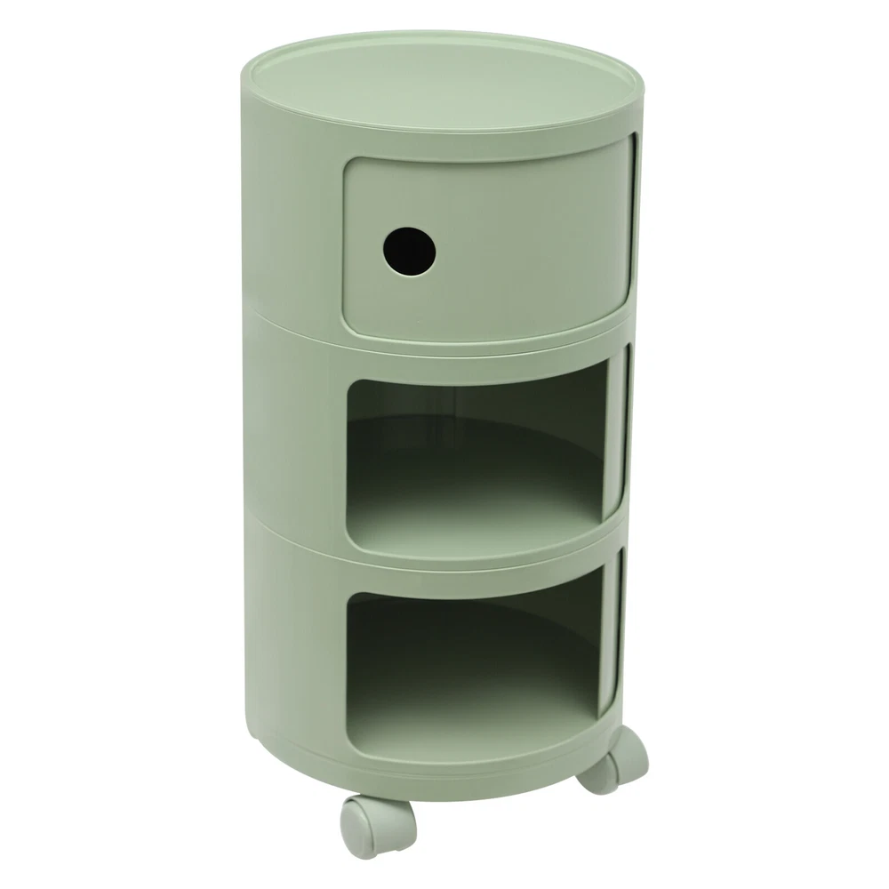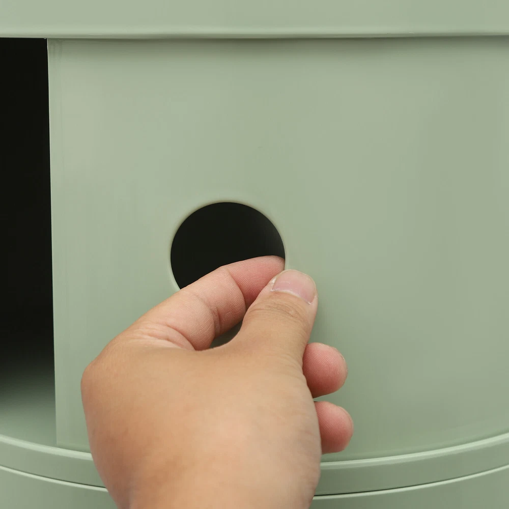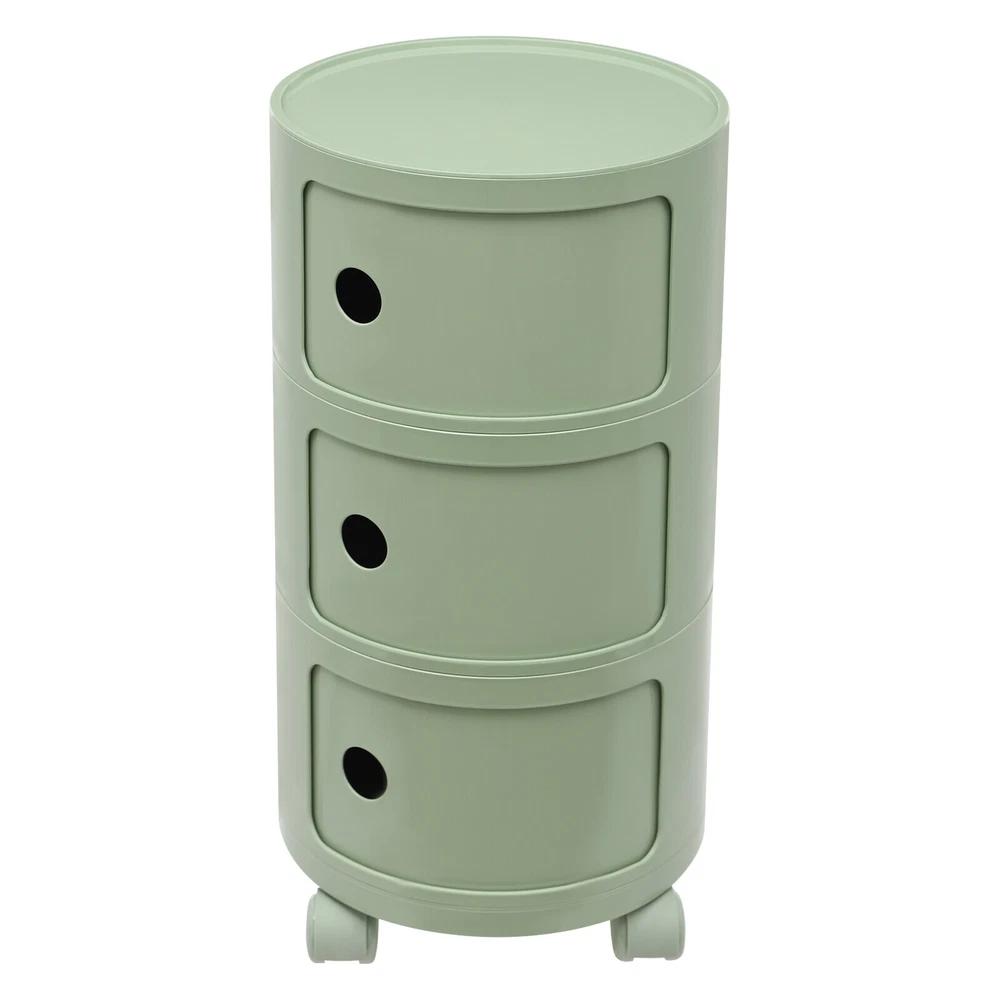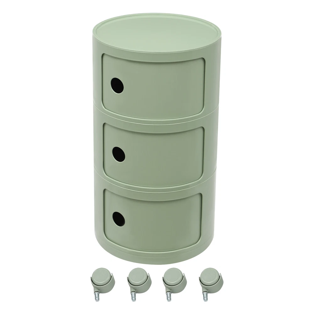3-tier Round Bedside Cabinet Multifunctional End Table Storage Cabinet w/Wheels Description Are you still struggling with a lack of storage space above your home? Here comes the good helper. This 3-tier bedside cabinet boasts a large size with 3 cabinets and a top space to provide you with enough storage space. The exquisite appearance makes it the finishing touch to a dull room. It stands quietly where you need it and brings you a sense of well-being within reach. Key Features High-quality Material : Made from high-quality ABS material, this product is wear-resistant , safe, water-resistant , sturdy, and durable, so it can withstand the test of time well. Thoughtful Design: Each tier is designed with a sliding door that pushes and pulls smoothly for easy access while preventing items from dusting and enhancing privacy. High Load-Bearing Capacity: The sturdy structure, thickened material, and stable designed wheels allow it to withstand a weight of up to 88.18 pounds without collapsing, allowing you to use it with confidence. Flexible to Move: You can easily move the product anywhere you need it thanks to its four four wheels, giving you a lot of mobility and convenience. Ample Storage Space : The 3-tier product and a wide top platform allow you to classify and store various items, decorations, etc., creating a clean and comfortable living environment for you. Each tier is 7.28 inches in height, providing ample storage space for your usage needs. Powerful Function: This product significantly combines practicality and aesthetics, it is very suitable for many places with storage and tidying needs. It can not only help you organize your room in order, and keep it tidy at all times, but also as an embellishment to make your home more attractive. Fashion Appearance: It adopts a light green color, which is simple, elegant, and very fashionable. Not only is it modern style, but it can also decorate the house. Enjoy Bedtime: After you wash, heat a cup of milk, lie on the bed, select a book(not included) from the bedside table, and enjoy a comfortable bedtime before the end of the tired day. Effortless Cleaning : A smooth surface and simple structure are convenient for cleaning to save you time. Ideal Gift: A simple but elegant design provides natural charm, leading the product to integrate into various decoration styles, so it is a suitable gift for others. Buy with Confidence: We stand behind all our guests and look forward to assisting you with your purchase. It is our pleasure to answer your confusion and questions. The end of the story between us is not "we sell and you buy". Details Round Corners: Compared with traditional square corners, an arc design can better ensure safety during installation and use. Raised Bottom: The raised bottom effectively prevents moisture and facilitates cleaning. Protective Guardrail: It effectively reduces the falling of items and serves a decorative purpose. 3 Round Holes: They facilitate opening and closing cabinet doors. Application It is suitable for indoor places such as the living room, office, bedroom, and cloakroom. It can be used as a bedside table, sofa side table, or storage cabinet for storing cosmetics, books, newspapers, magazines, cups, sundries, etc. Specifications Material: ABS Style: Modern Color: Light Green Mount Type: Freestanding Shape: Round Indoor/Outdoor Usage: Indoor Assembly Required: Yes Number of Tiers: 3 Number of Wheels: 4 Load Capacity: 40kg/88.18bs Gross Weight: 3.3kg/7.28lbs Net Weight: 2.8kg/6.17lbs Product Size(D*H): 12.6*25.2 in Each Tier Height: 18.5cm/ 7.28 in Package Size: 61*35.5*35.5cm/24.02*13.98*13.98in Package Included 1* 3-tier Bedside Cabinet 4* Wheels Notes Please carefully check if the size is suitable before placing an order. Please use the product within its weight capacity to avoid damage. Please note that this product does not include items such as books and newspapers. Please allow the slight color difference caused by the shooting light and 1-3cm error due to manual measurement, and make sure you do not mind before you order. Brand CNCEST UPC 763508618671 Item Height n/a Item Length N/A Item Width N/A Type Nightstand