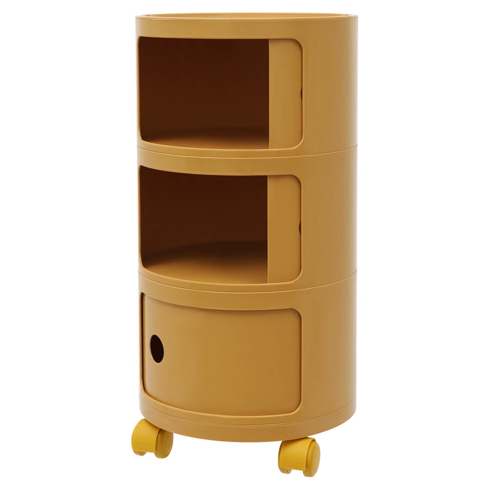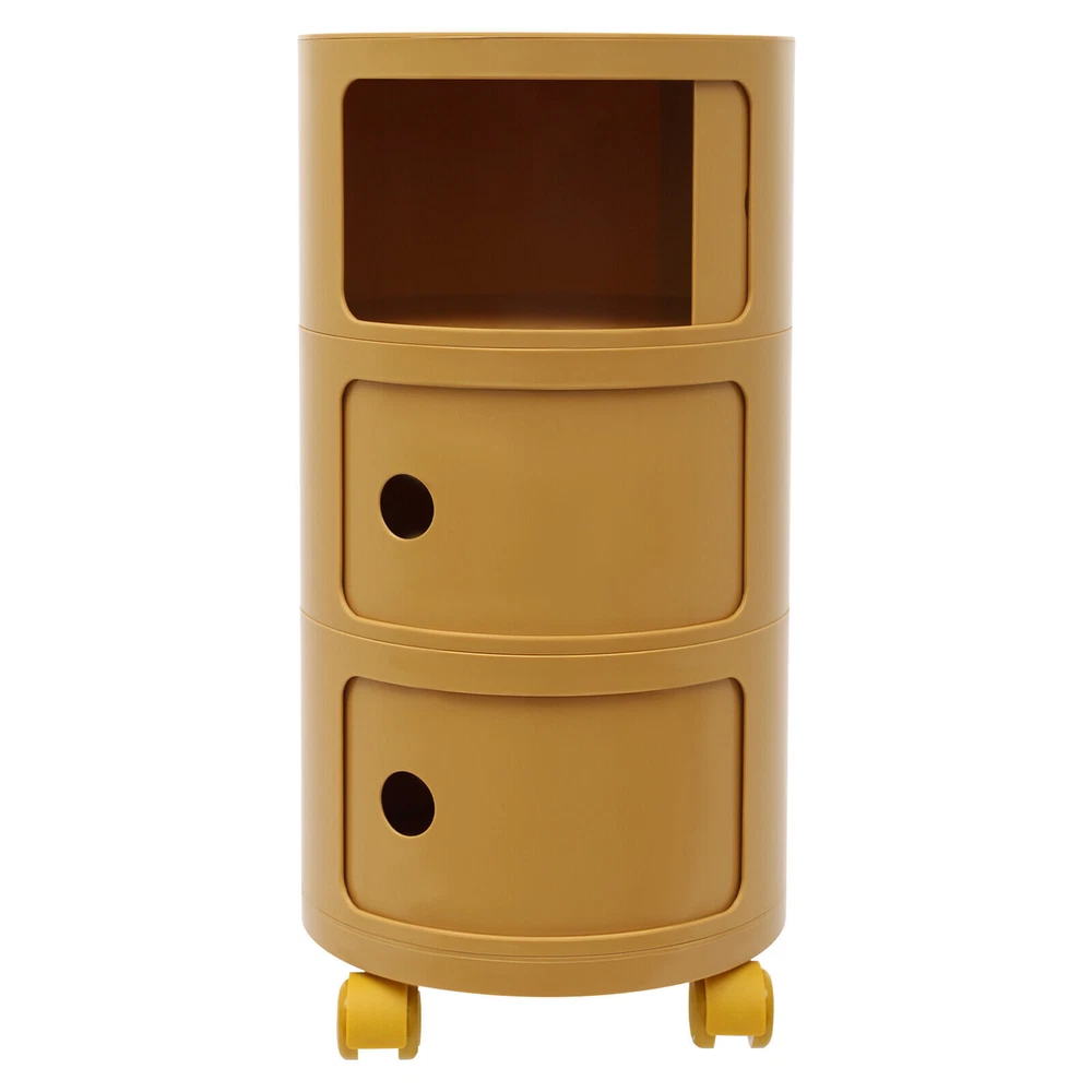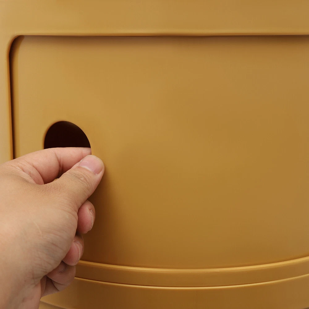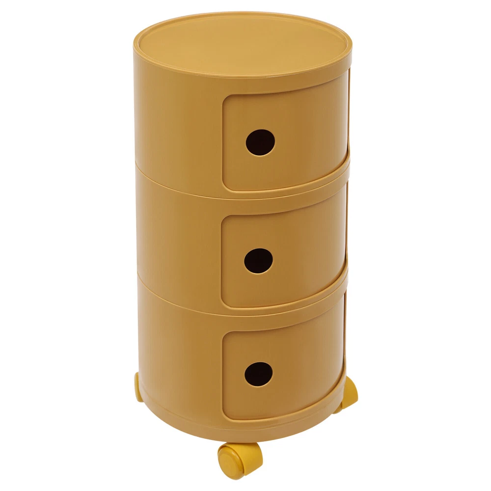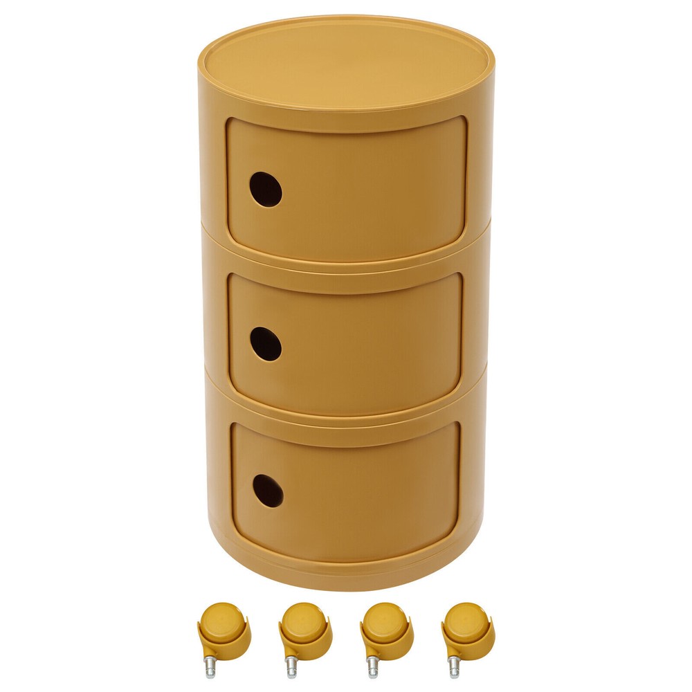 This round storage end table is a game-changer for small spaces! The three-tier design offers plenty of room for books, snacks, or bedside essentials, while the cheerful yellow color adds a fun pop to any room. The wheels make it easy to move around, and the sturdy ABS construction holds up to 88lbs—perfect for holding drinks, decor, or daily clutter. Assembly was quick, and it looks way more expensive than it is. Love how versatile it is for bedrooms, living rooms, or even as a portable office organizer!