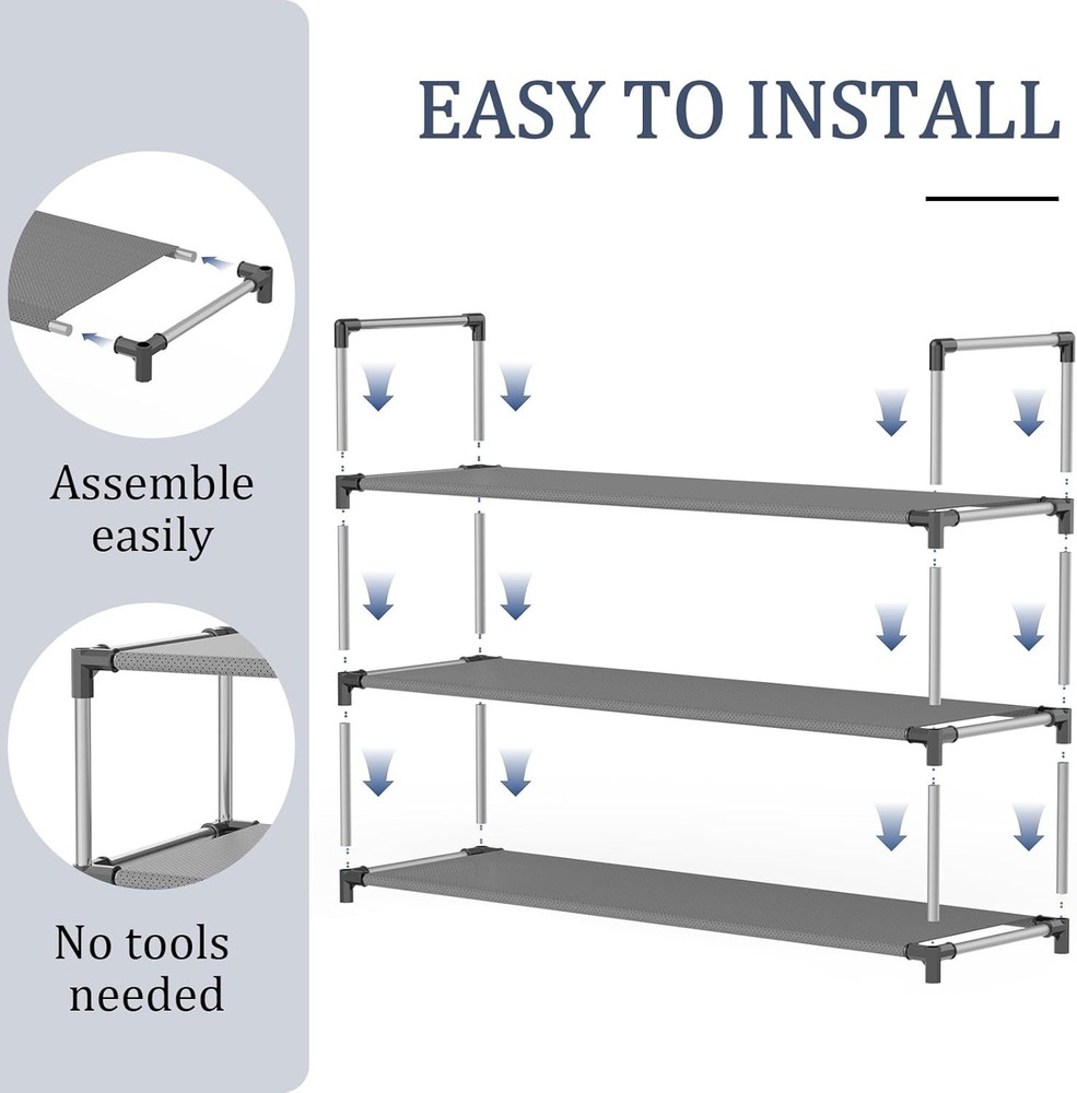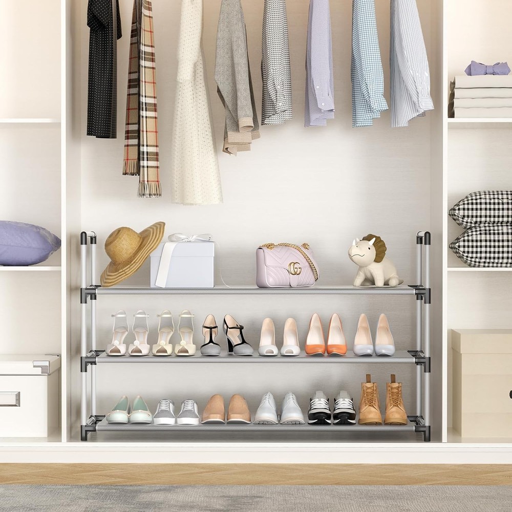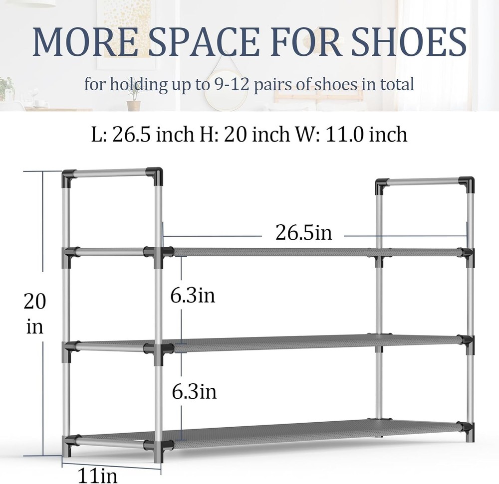 Shoe Rack with Non-Woven Fabric,Stackable Grey 3-Tier 3 Tier(26"W) Description: Features: High quality materials: The shoe organizer is made of rust resistant coated stainless steel pipes to ensure durability and stability. The non-woven fabric material can easily lift any shoes. Spacious storage space: This shoe rack provides enough space to accommodate your daily footwear, including sports shoes, high heels, slippers, rain boots, and more. Each layer can store approximately 4 pairs of shoes. Easy to assemble: The shoe storage includes all accessories and provides instructions to ensure quick and easy assembly of the shoe rack, without the need for screws or any other tools during installation. Easy to move: The design of 2 handles allows the shoe shelf to be easily lifted and moved anywhere, maximizing its effectiveness. Multi purpose: This shoe rack organizer is compact in size and can be placed in small spaces at home, such as garages, walk-in wardrobes, and living rooms. It can be used to store shoes, bags, records, and more. Fully utilize the compact storage area. SHIPPING: We are always working hard to ensure your package arrives as soon as possible. Please understand that some factors like weather, high postal traffic, and the performance of shipping companies are outside of our control. We offer free shipping to the lower 48 states and ship within 3 business days of payment, usually sooner. We do not accept P.O. Boxes. Please provide a physical address. For shipping outside of the continental USA, we only use eBay's Global Shipping Program. The item is shipped to KY and then sent to the rest of the world. International customers are responsible for all duties and taxes. Continue to check out in order to calculate costs for shipping the item to your country. Messages regarding eBay's Global Shipping Program MUST be directed at eBay EXCLUSIVELY. PAYMENT: We accept payment by PayPal only (Can accept all kind of credit cards). Please pay as soon as possible after winning an auction, as that will allow us to post your item to you sooner. Payment must be received within 3 business days of auction closing. Before buying, please make sure your PayPal and eBay address is correct. If not, please correct it before payment. We have confidence in our products, but if you are not fully satisfied please contact us within 30 days of purchase and you will get full refund of your money. Return the product in the same condition you received it. Please note - return shipping will be paid by the buyer.