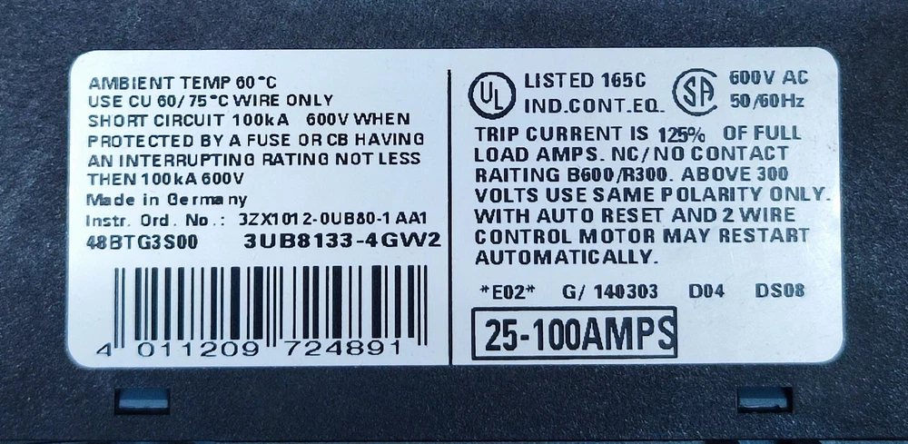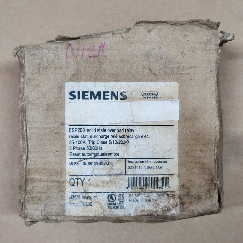 NEW 3UB8133-4GW2 SIEMENS SOLID STATE OVERLOAD RELAY 3UB8133-4GW2 . Item is new without original packaging. Shop with Confidence - 30-Day Money Back Guarantee! Rest assured, all our items are backed by a 30-day money back guarantee. If you're not completely satisfied, simply return your purchase within 30 days for a full refund. Shipping Details: Orders typically ship the same business day upon cleared funds in our account. Standard order processing takes 1 to 2 business days. Items are packed carefully to ensure safe delivery. Free International Shipping via DHL/UPS Expedited Shipping Services. Please Note: International buyers are responsible for all customs, duties, taxes, and brokerage fees."